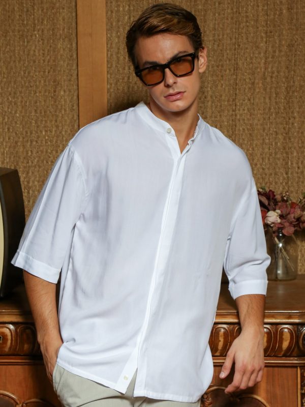 Πουκαμίσα Με Μάο Γιακά Και Μανίκι 3/4 Kody 33-7405 Λευκό Slim-fit
