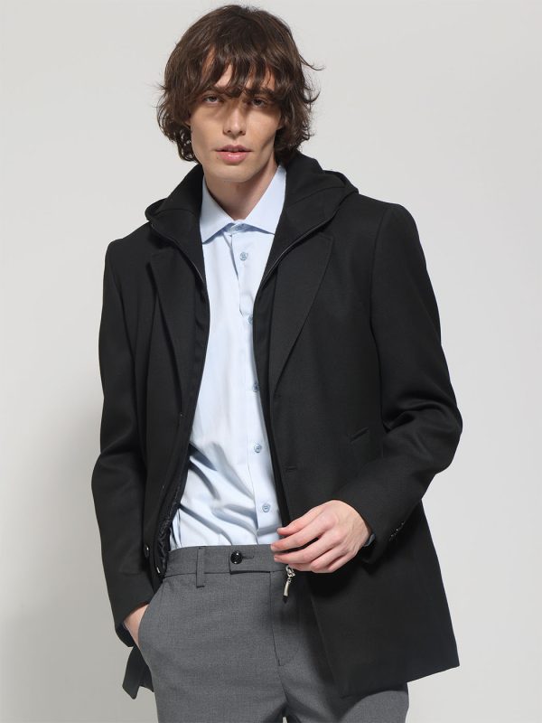 Ανδρικό Παλτό Με Κουκούλα BORTOLO 2573 μαύρο