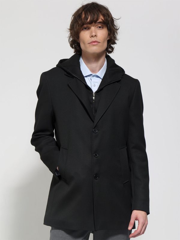 Ανδρικό Παλτό Με Κουκούλα BORTOLO 2573 μαύρο