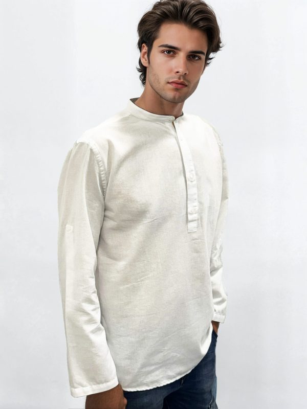 Λινή Πουκαμίσα Μακρύ Μανίκι Slim-fit LEANDRO 33-7455 Λευκό