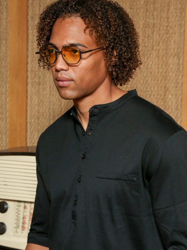 Ανδρικό T-Shirt Με Κουμπάκια & Μανίκι 3/4 TANO 207083 Μαύρο