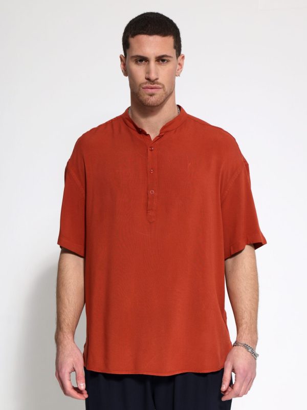 Κοντομάνικη Πουκαμίσα Με Μάο Γιακά Bahamas 33-7432 Κεραμιδί