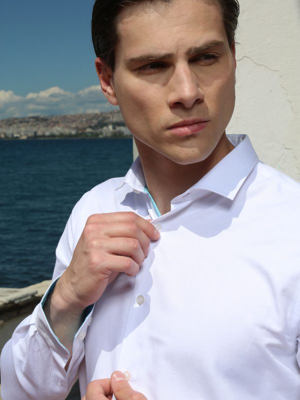 Ανδρικό Πουκάμισο Με Εφαρμογή Slim Milo 33-7408 Λευκό Slim-fit