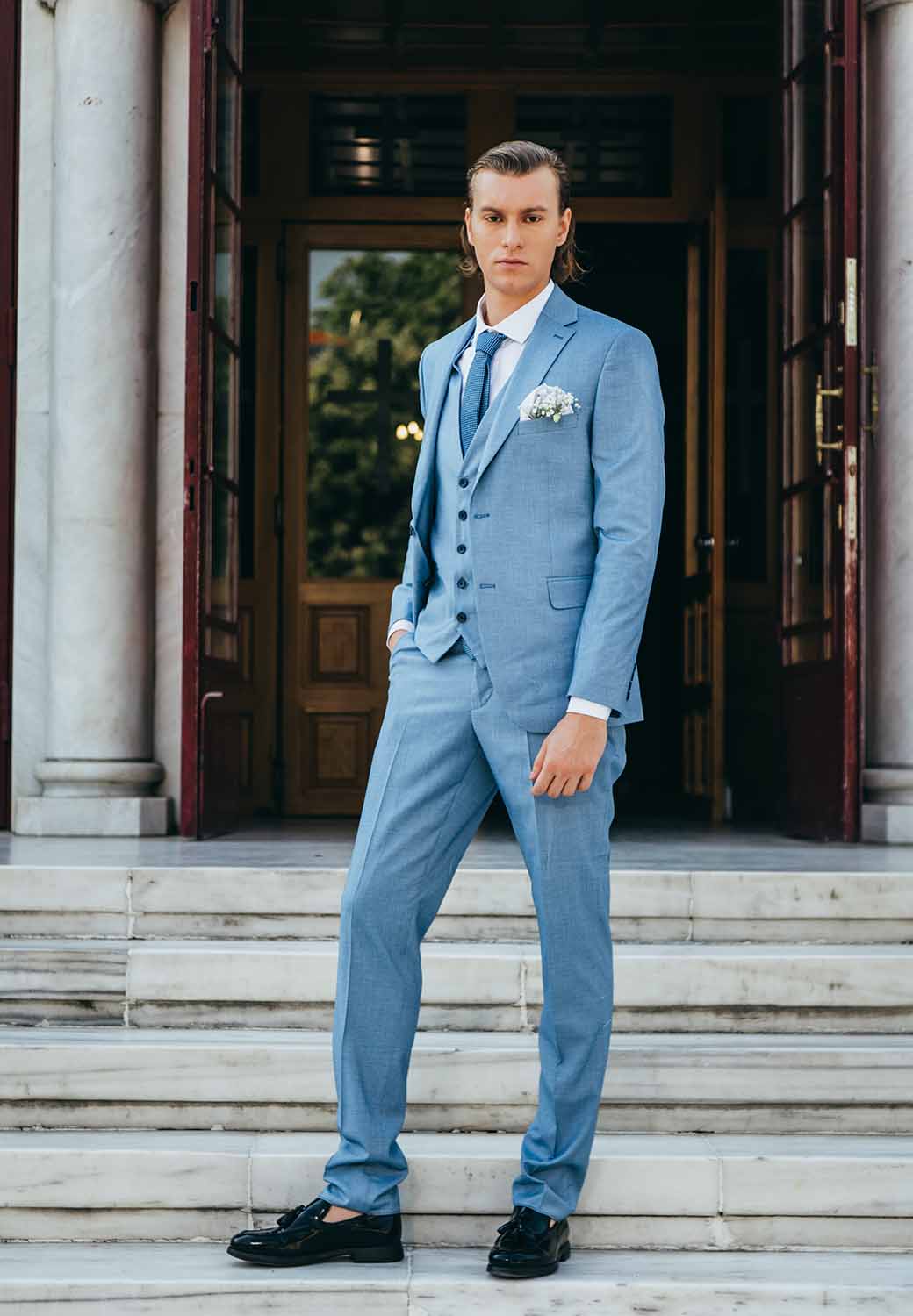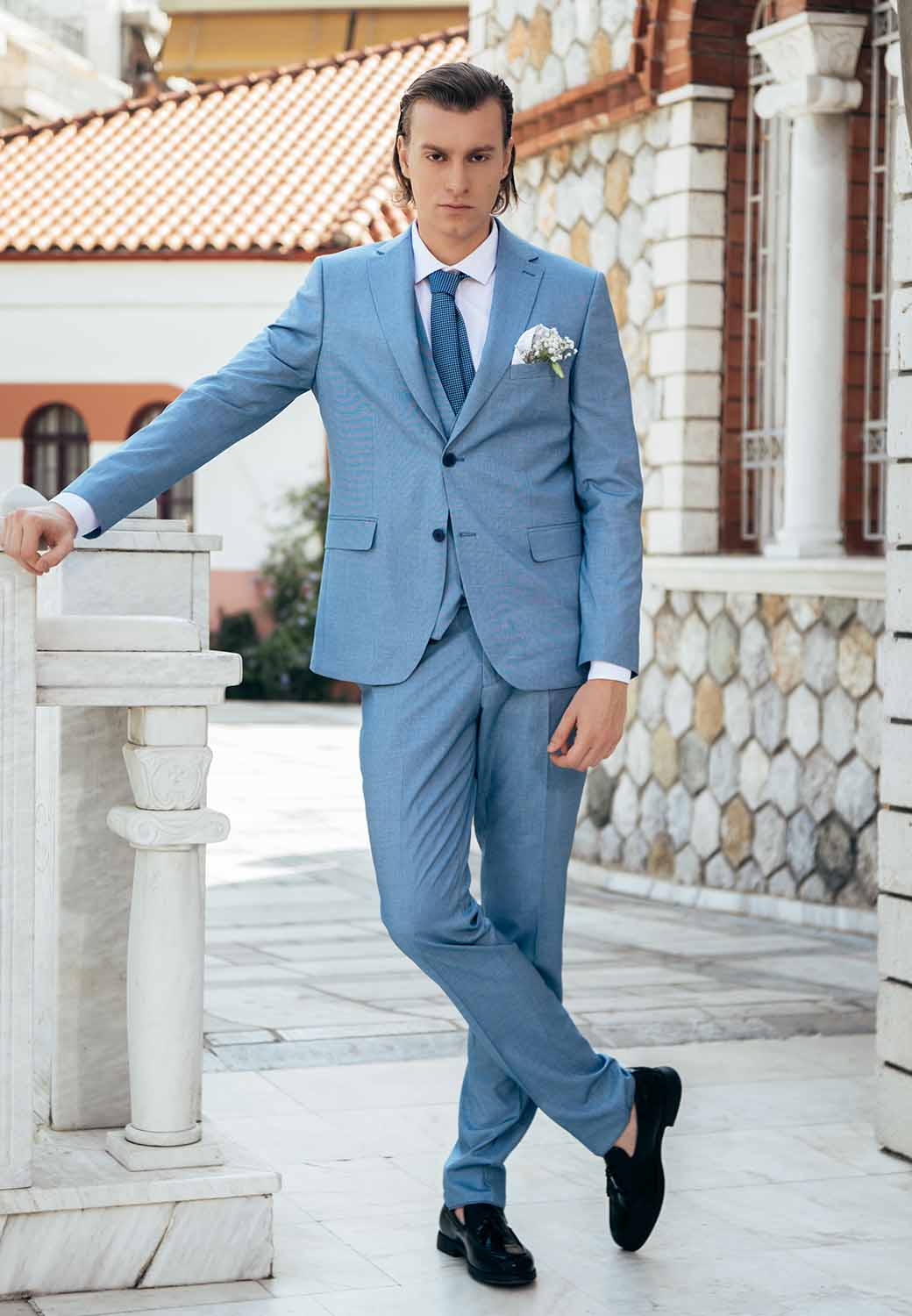 Μοντέρνο Γαμπριάτικο Κοστούμι Με Γιλέκο Charis 33-1611 Light Blue