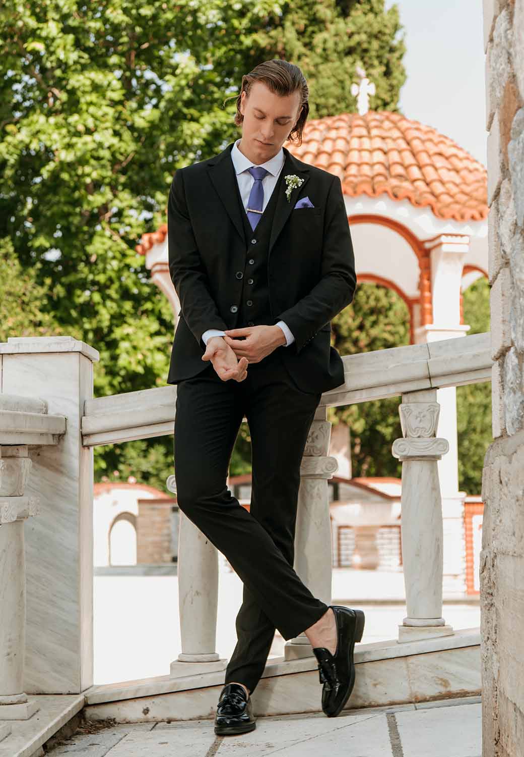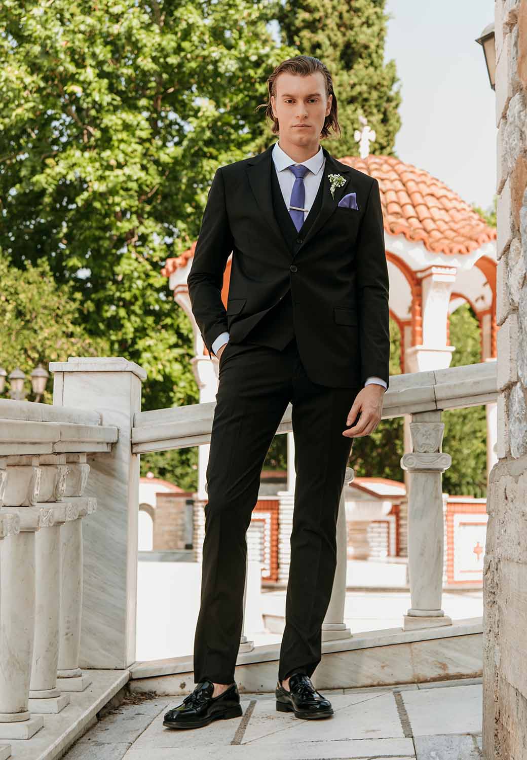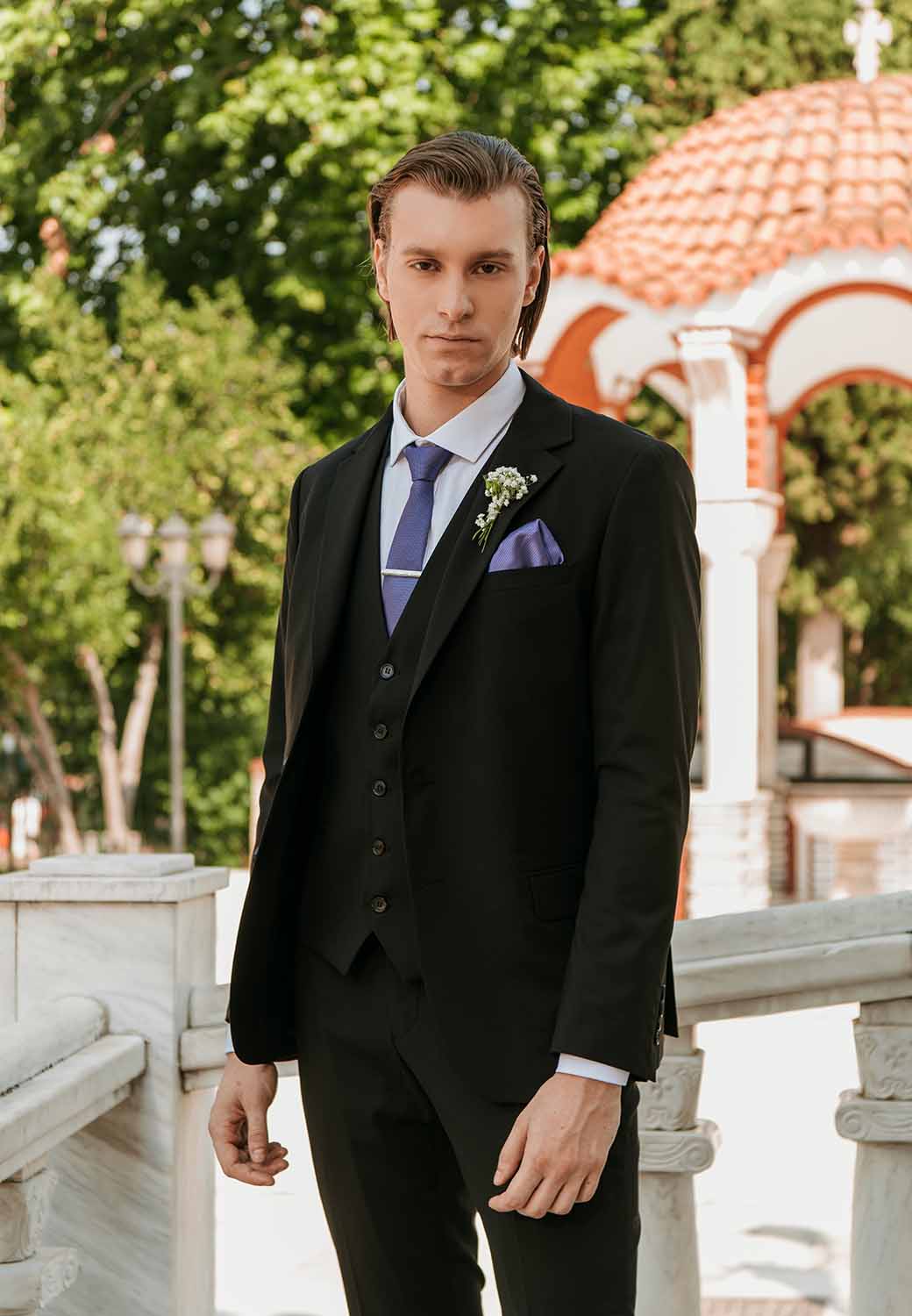 Το κοστούμι είναι κατασκευασμένο από υψηλής ποιότητας ύφασμα και προσφέρει άνεση και ευκολία κίνησης, χωρίς να θυσιάζεται η εμφάνιση. Με μοντέρνες λεπτομέρειες και εκλεπτυσμένο στυλ, αυτό το κοστούμι θα κάνει τον γαμπρό να τραβήξει όλα τα βλέμματα και να αισθανθεί ιδιαίτερος στη μεγάλη του ημέρα.