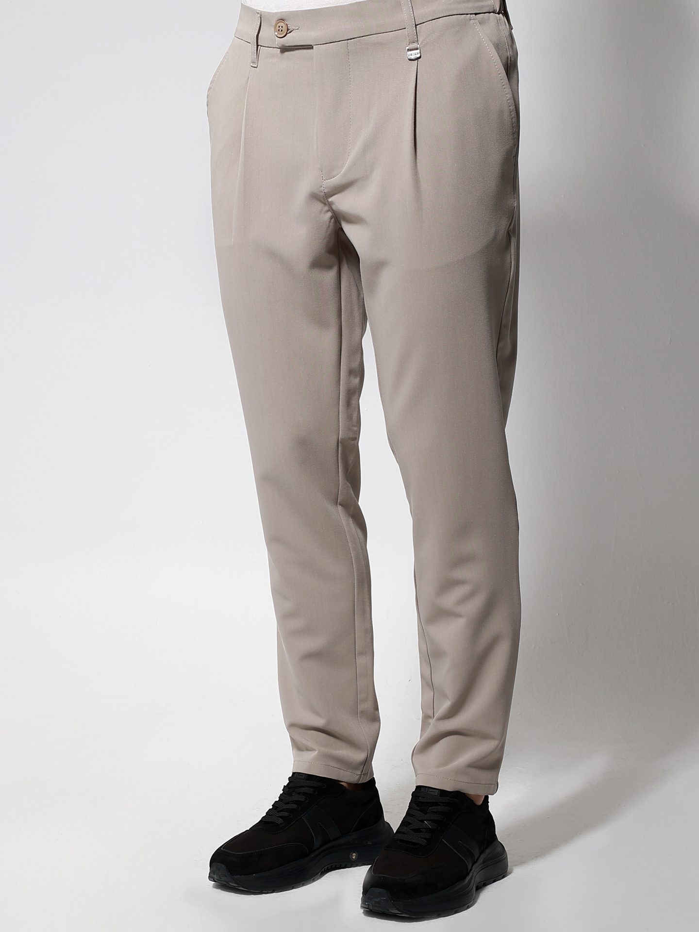 Ανακαλύψτε το άνετο και στιλάτο ανδρικό παντελόνι που θα ανανεώσει την γκαρνταρόμπα σας. Κατασκευασμένο με πιέτες μπροστά και λάστιχο στο πίσω μέρος για απόλυτη εφαρμογή, αυτό το φορμοπαντέλονο συνδυάζει άνεση με κομψότητα.
