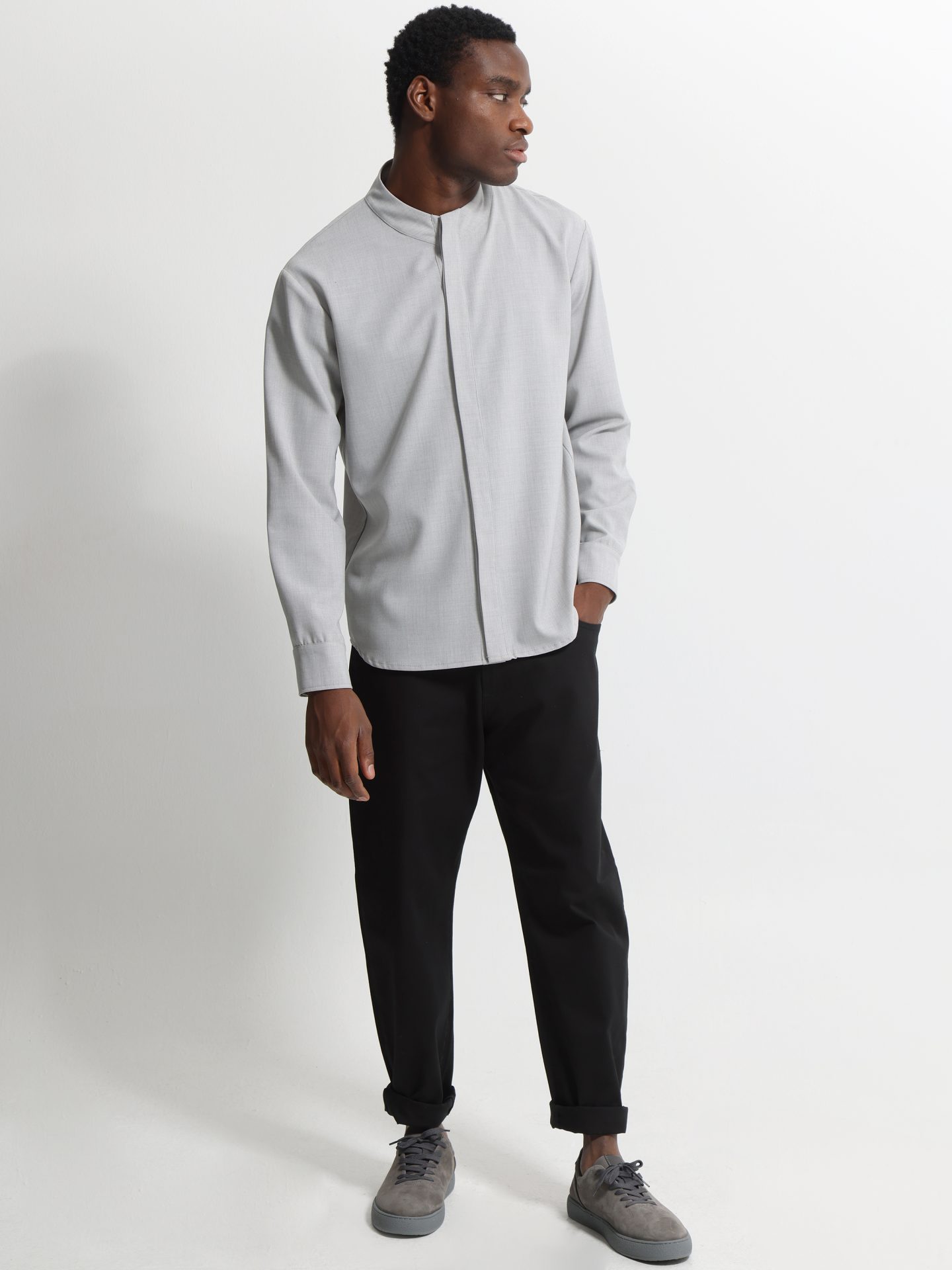 Ένα ανδρικό πουκάμισο που ξεχωρίζει για τον ιδιαίτερο γιακά του, εμπνευσμένο από το ιταλικό στυλ που αποπνέει κομψότητα και φινέτσα. Ο minimal σχεδιασμός του, χωρίς υπερβολές, αναδεικνύει την καθαρή γραμμή του και το καθιστά ιδανικό για τον άνδρα που αναζητά μια διακριτικά εντυπωσιακή επιλογή. Το κρυφό κούμπωμα προσθέτει μοντέρνα αισθητική, διατηρώντας παράλληλα την κομψότητα ενός κλασικού πουκαμίσου.
