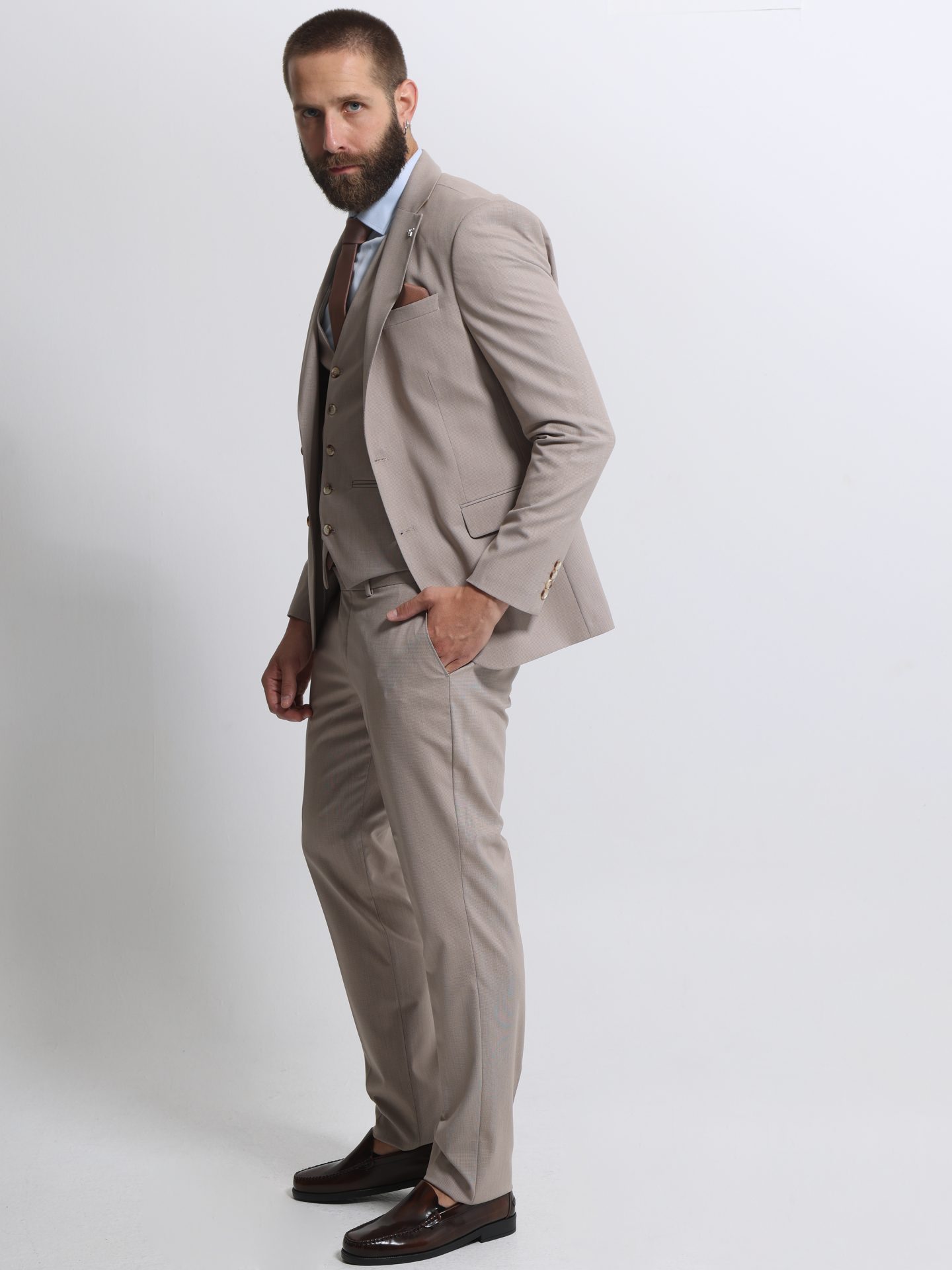 Ανδρικό Κοστούμι Με Γιλέκο RICO 2019 Μπεζ