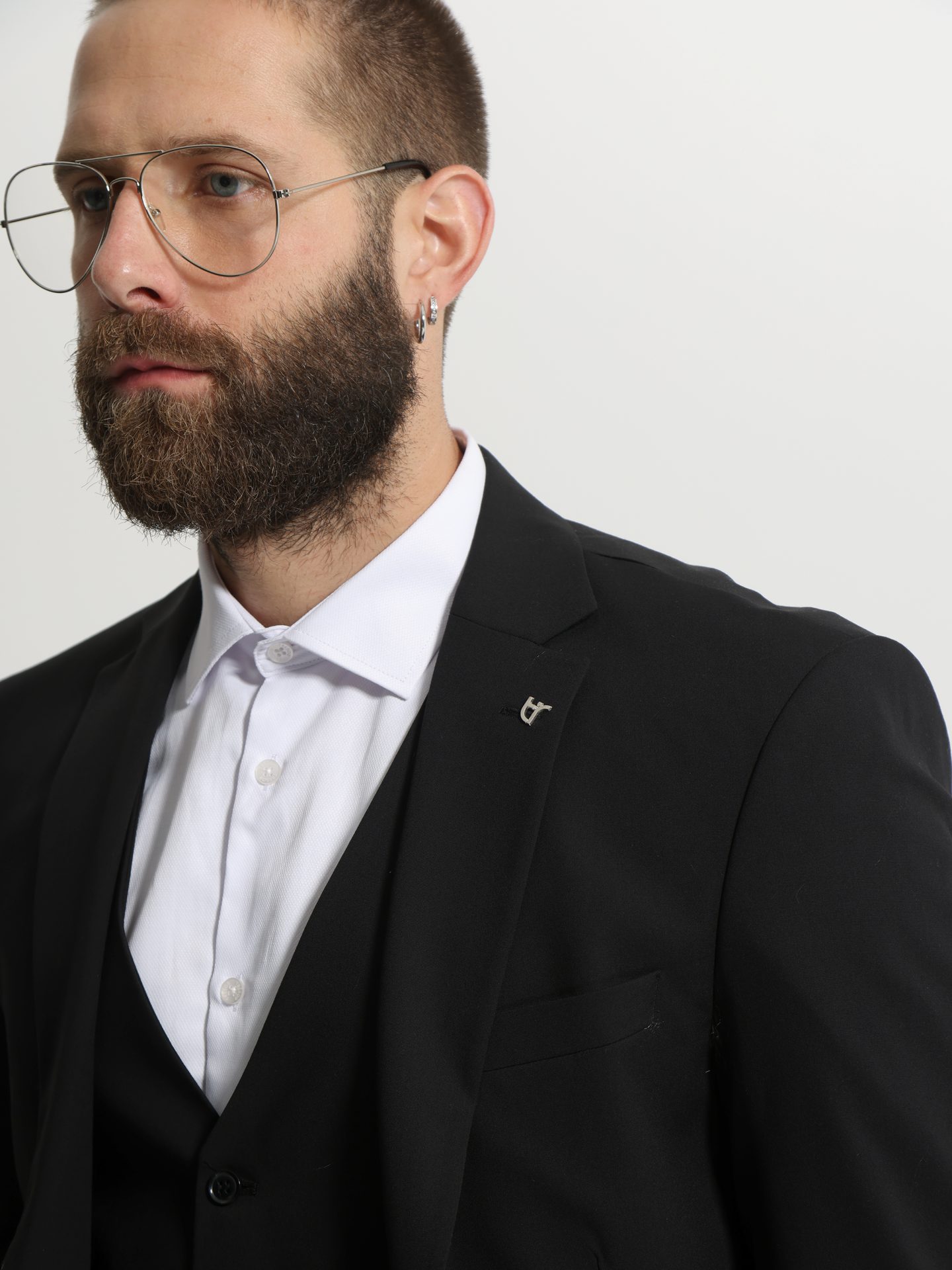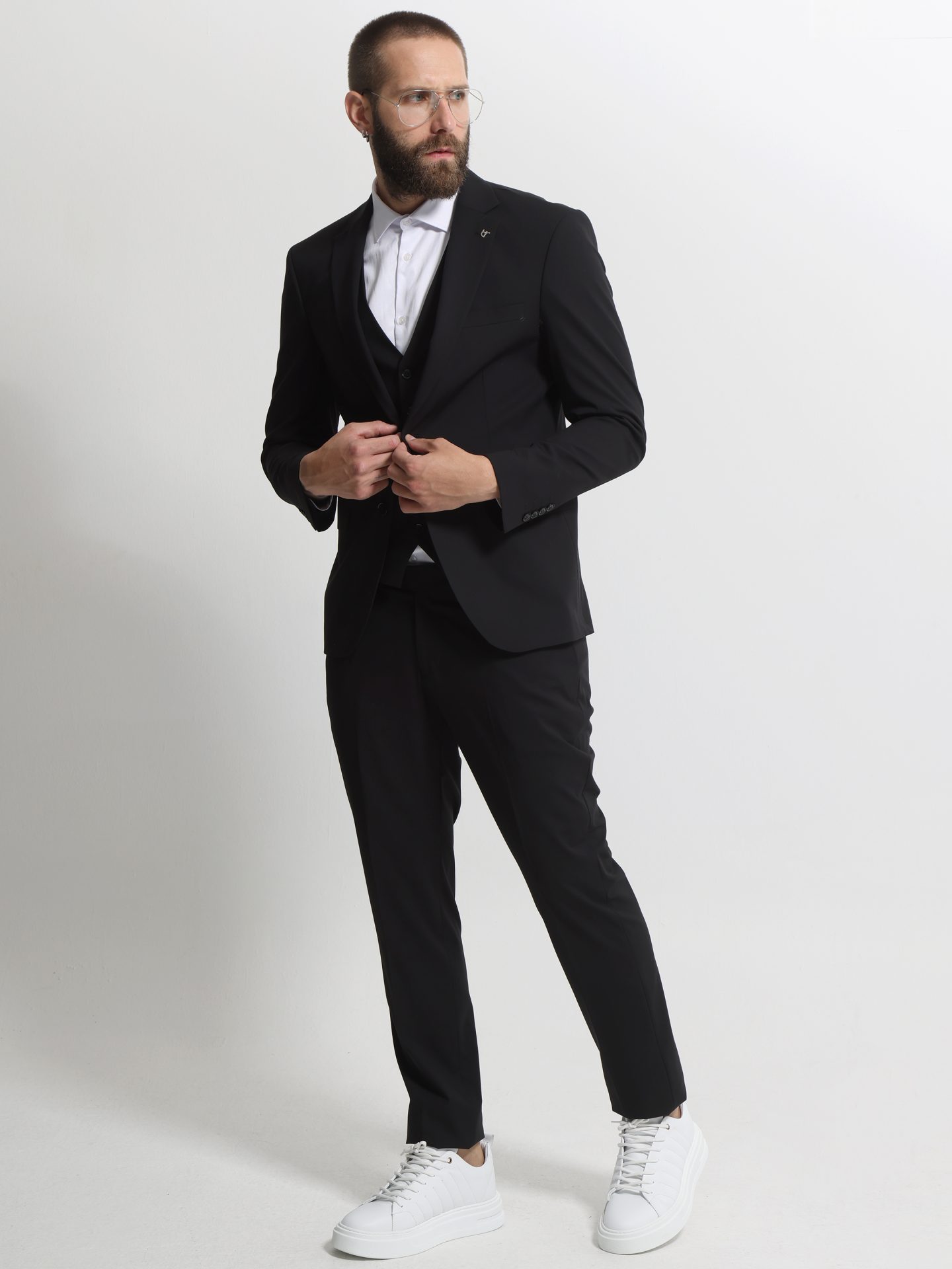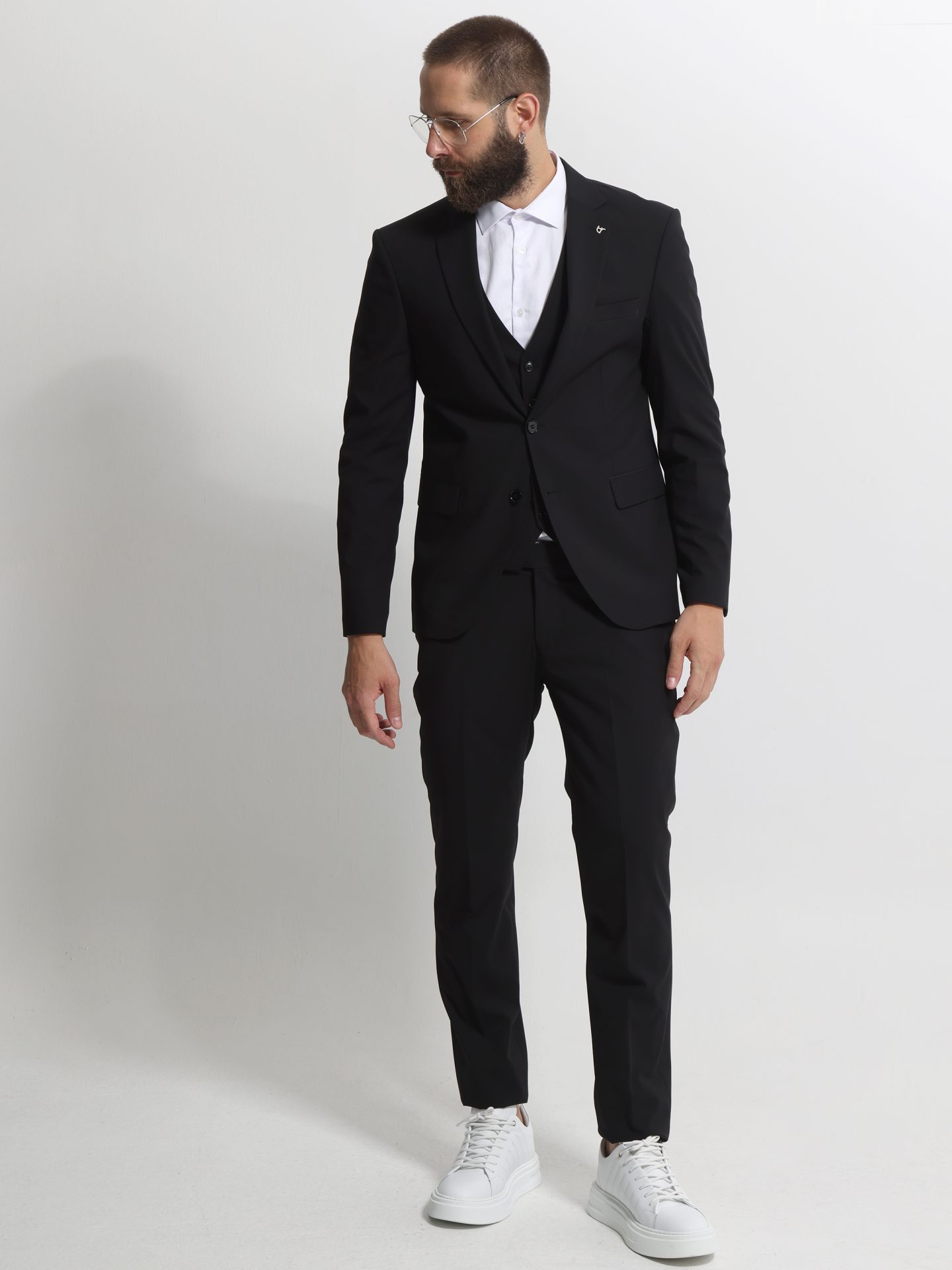 Ανδρικό κοστούμι με γιλέκο Houston σε μαύρο χρώμα από εξαιρετικής ποιότητας υλικά.