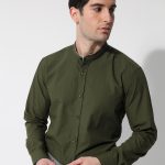 Πουκάμισο Με Μάο Γιακά MARAKES 33-7369 Χακί Slim-fit
