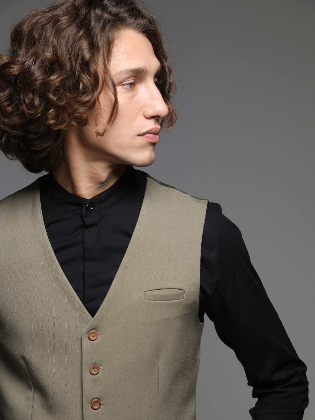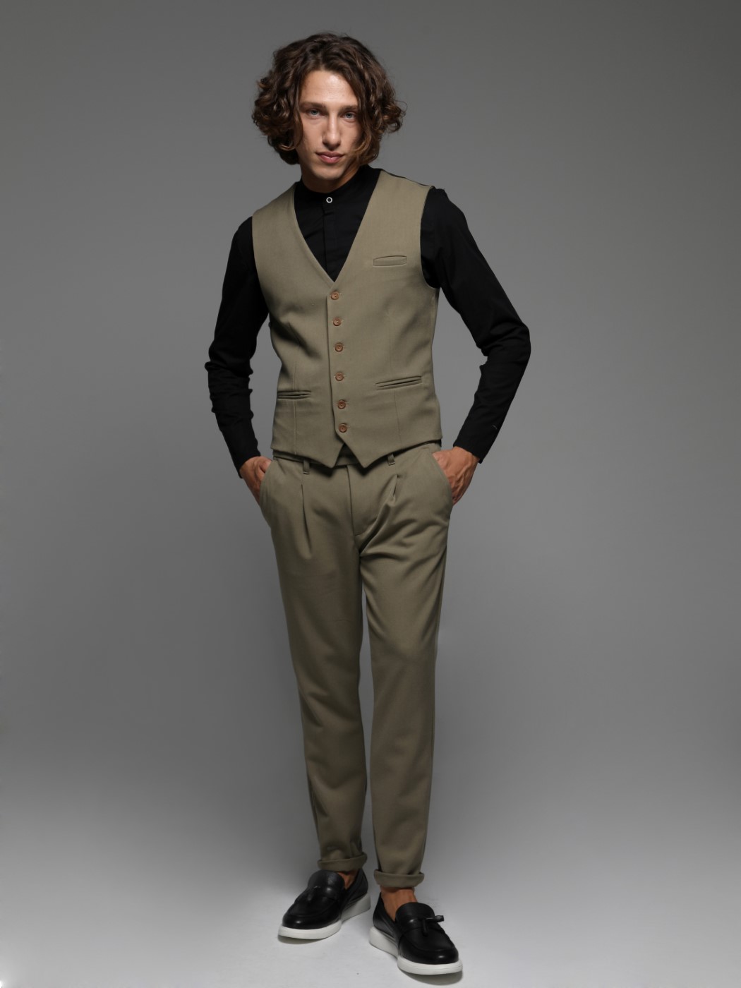 Ανδρικό γιλέκο DARIO σε Χακί χρώμα σε ύφασμα εξαιρετικής ποιότητας.