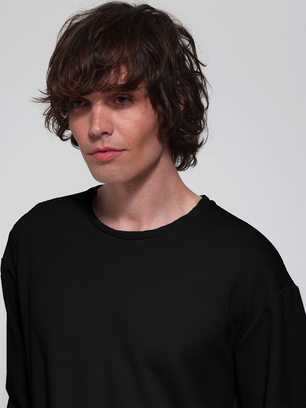 Ανακαλύψτε την ανδρική μπλούζα που θα αναβαθμίσει την γκαρνταρόμπα σας! Με ιδιαίτερη πλέξη και μακρύ μανίκι, αυτή η μπλούζα συνδυάζει στυλ και άνεση, ιδανική για κάθε περίσταση. Το υπέροχο ύφασμα προσφέρει απαλή αίσθηση στο δέρμα, κάνοντάς την ιδανική επιλογή για καθημερινές εμφανίσεις ή βραδινές εξόδους.