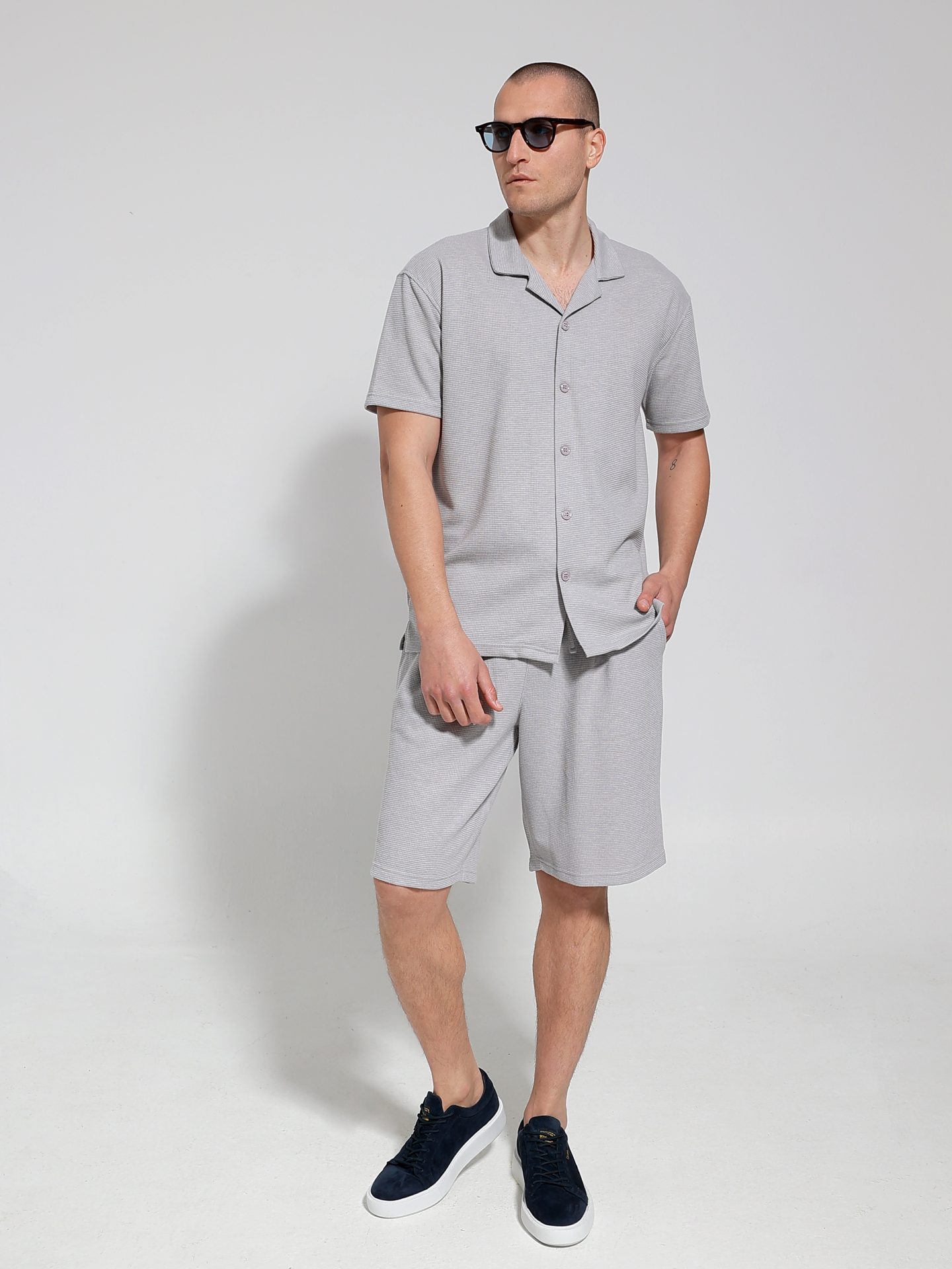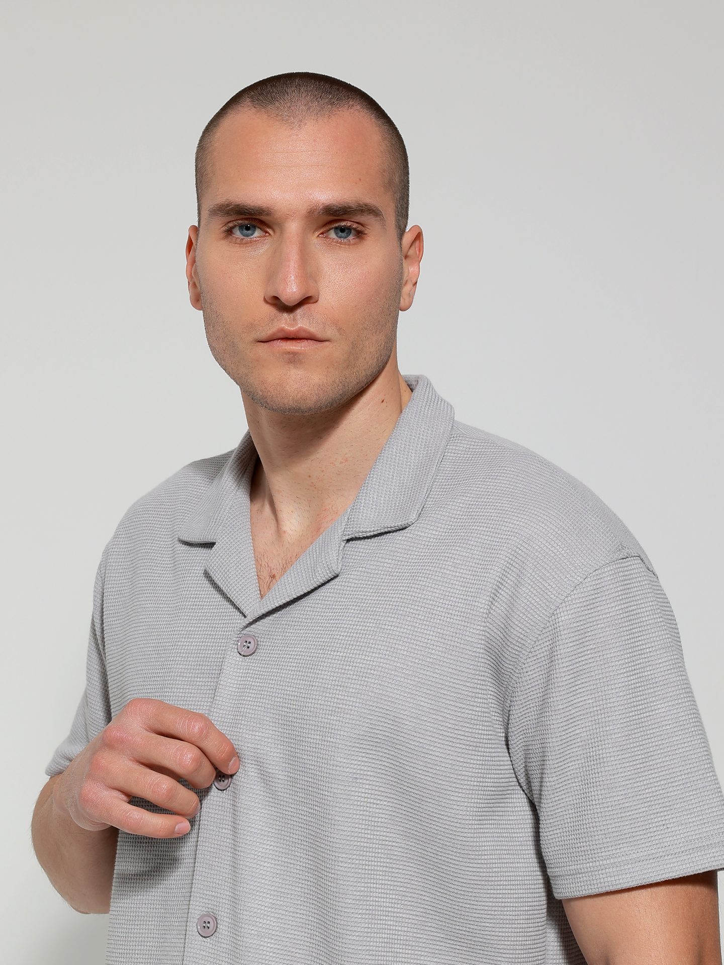 Ανακαλύψτε το ανδρικό κοντομάνικο πουκάμισο-μπλούζα, ιδανικό για κάθε καλοκαιρινή εμφάνιση. Το σχέδιο του κλείνει με κουμπάκια έως κάτω, προσφέροντας άνεση και στυλ σε κάθε σας βήμα.