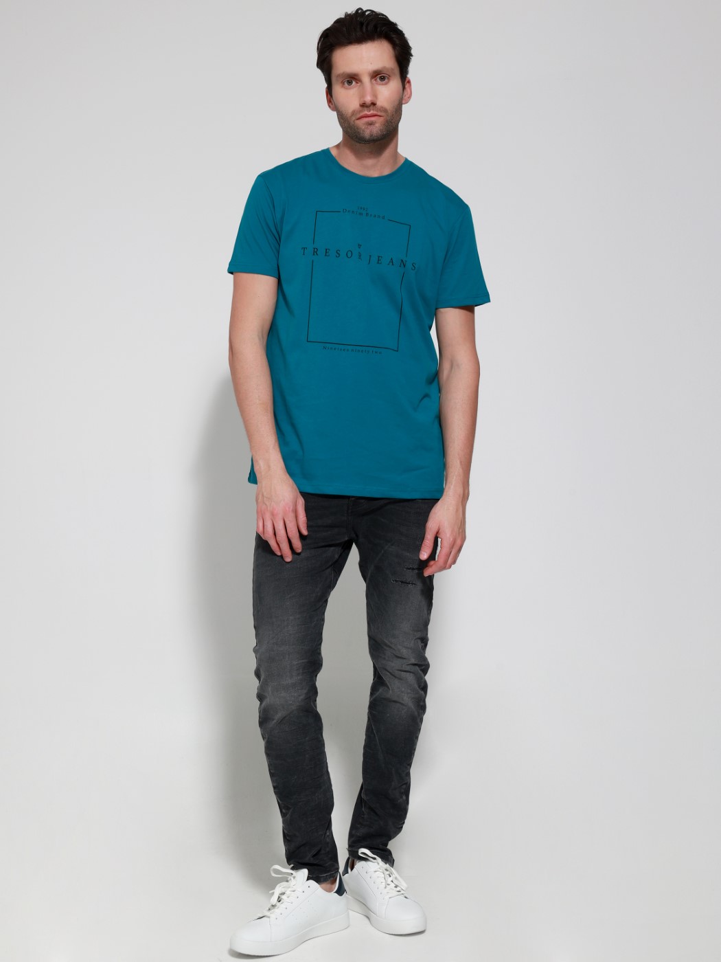 Ανδρικό Βαμβακερό Κοντομάνικο T-shirt Fun 207032 Πετρόλ
