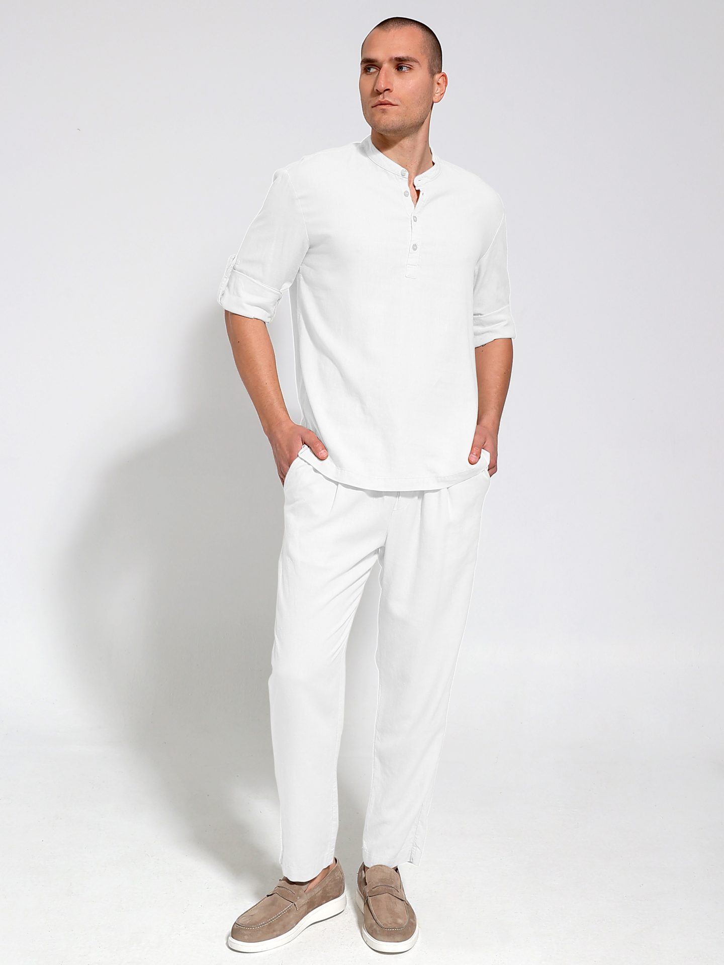Ανακαλύψτε το ανδρικό φορμοπαντέλονο, ένα ιδανικό λινό παντελόνι που συνδυάζει άνεση και στυλ. Με λάστιχο στη μέση και κορδόνι, προσφέρει τέλεια εφαρμογή και ευκολία στην κίνηση, κάνοντάς το ιδανικό για καθημερινές δραστηριότητες ή χαλαρές βόλτες.