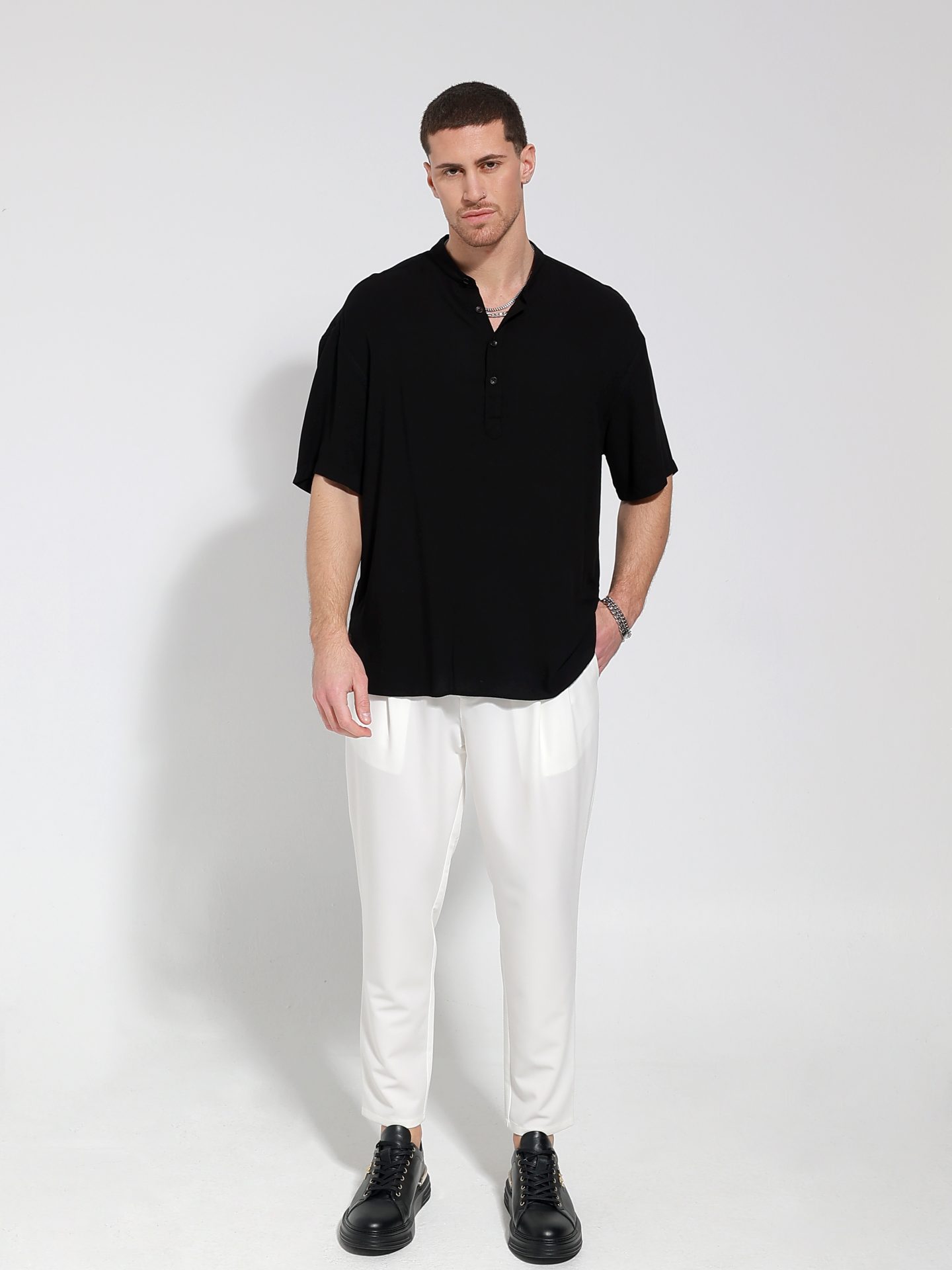 Ανακαλύψτε το ιδανικό ανδρικό παντελόνι 7/8, σχεδιασμένο για να προσφέρει άνεση και στυλ σε κάθε σας εμφάνιση. Το λάστιχο στη μέση εξασφαλίζει τέλεια εφαρμογή χωρίς την ανάγκη κουμπιών, κάνοντάς το ιδανικό για καθημερινές δραστηριότητες ή χαλαρές βόλτες.