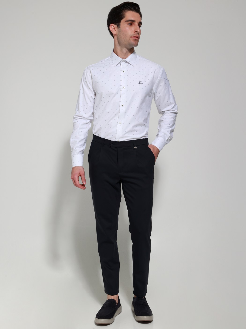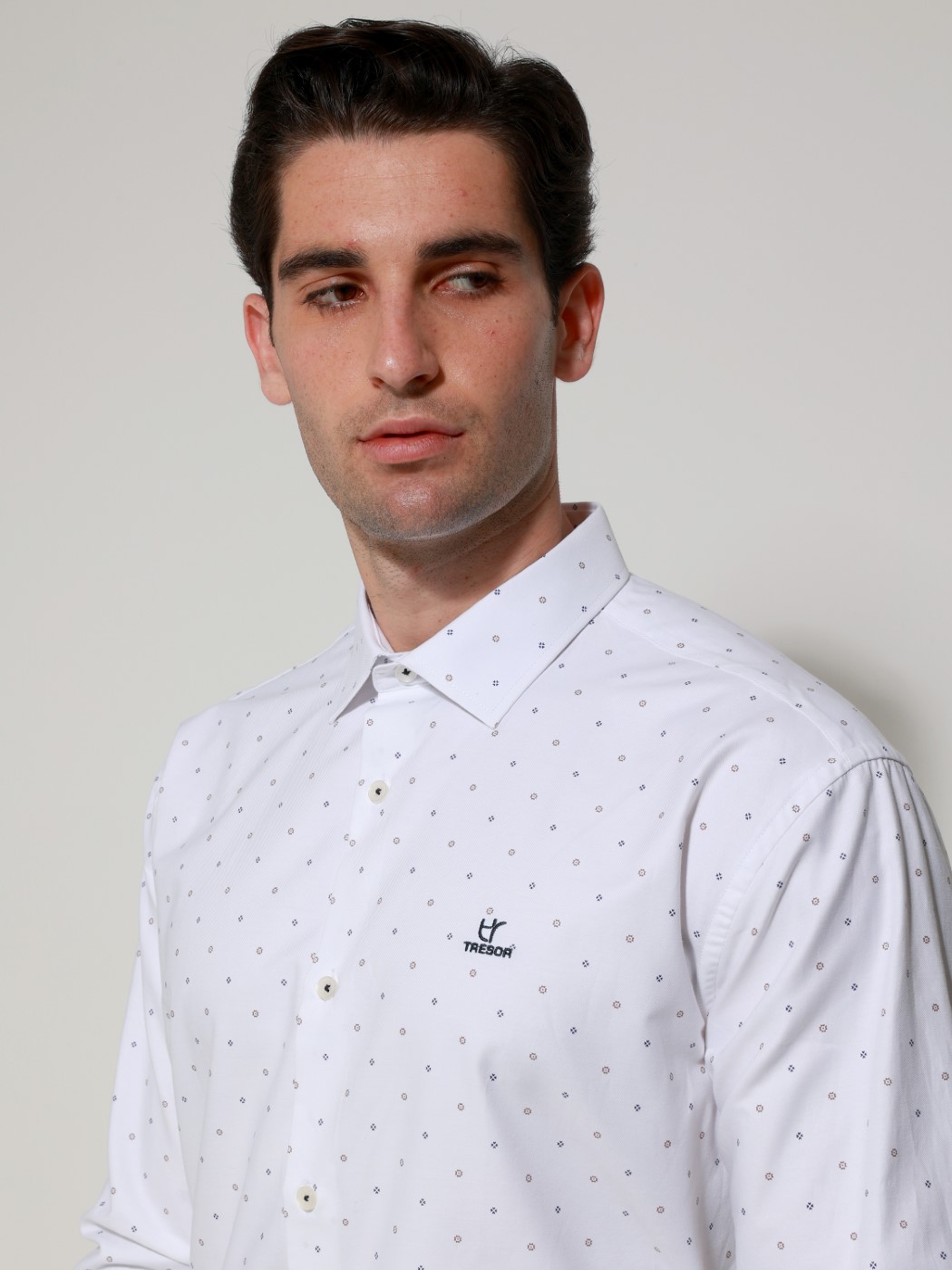 Πουκάμισο Tailor-Fit SENILLE 33-8153 Λευκό Με Σχέδιο Φαρδιά γραμμή
