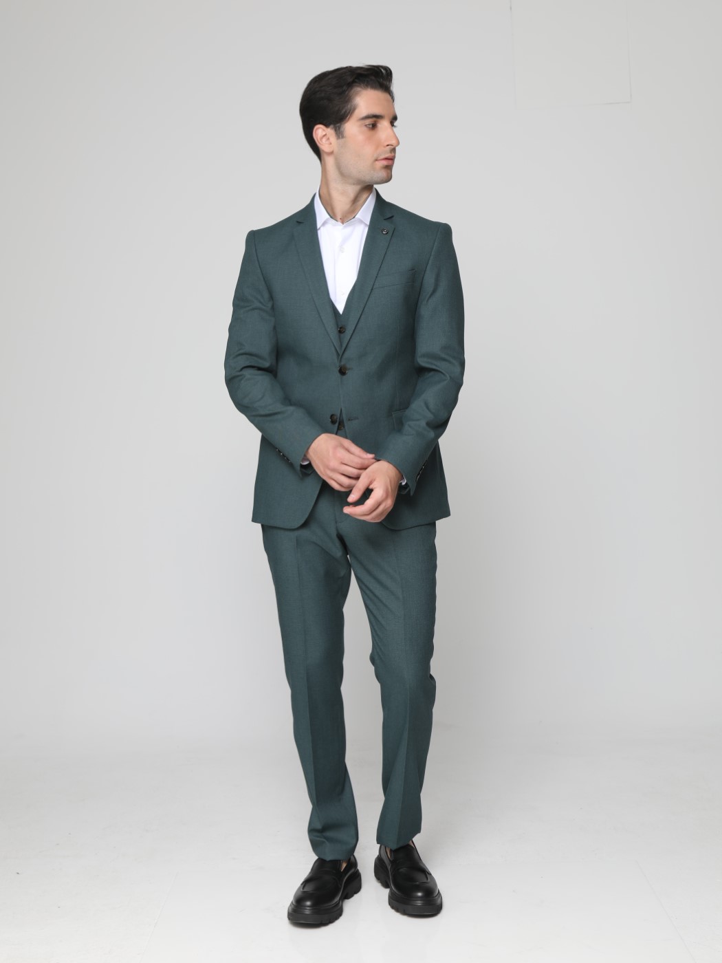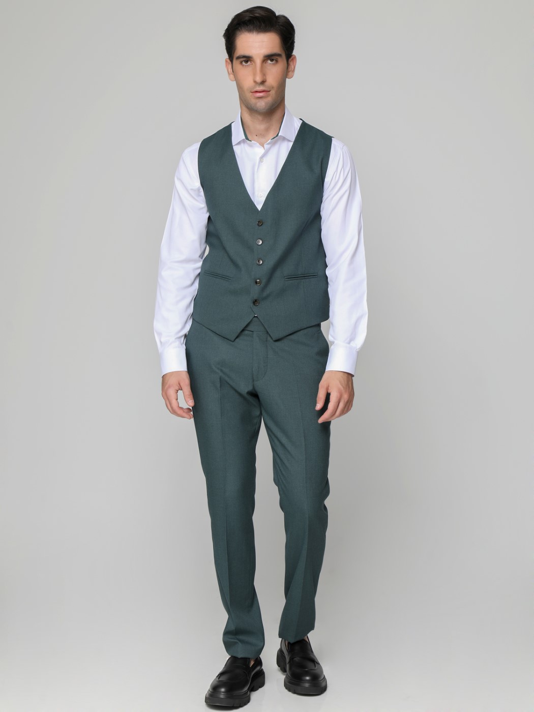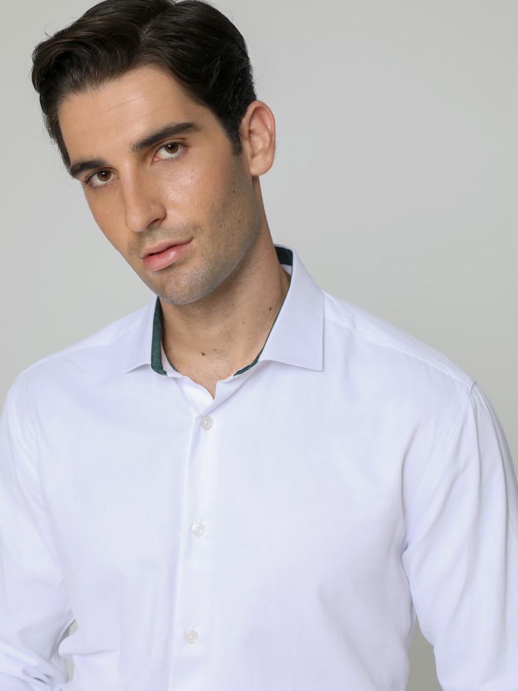 Ανδρικό Πουκάμισο Με Ιδιαίτερο Γιακά 33-7923 Λευκό-Πράσινο Slim-fit
