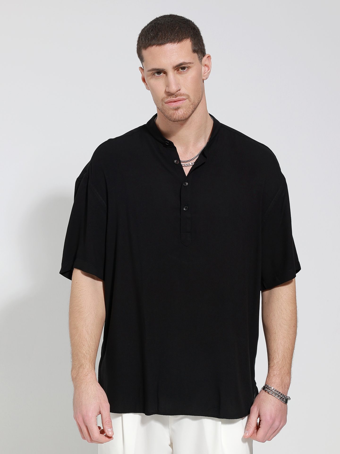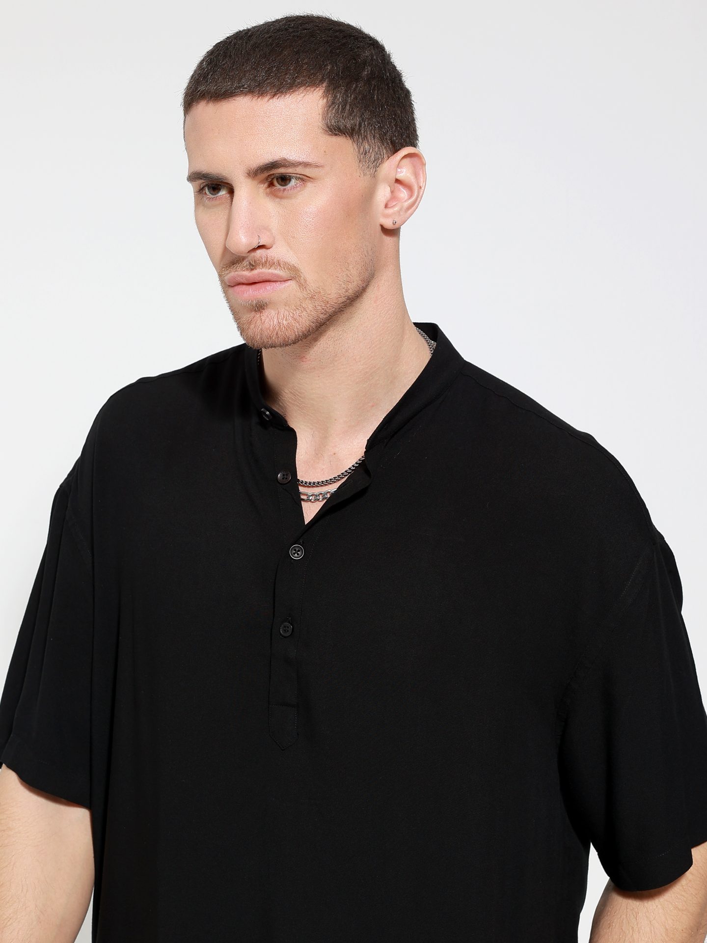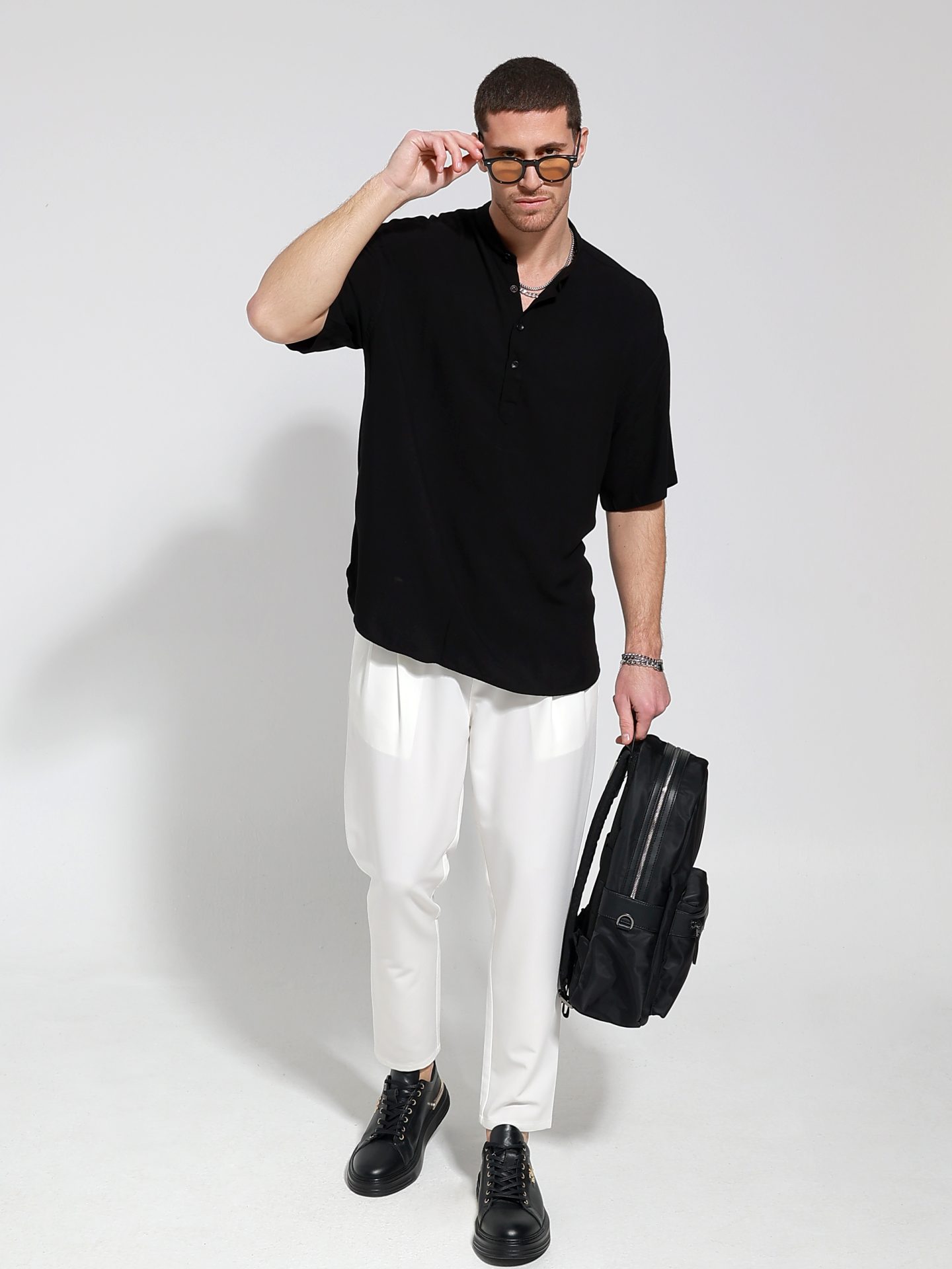 Κοντομάνικη Πουκαμίσα Με Μάο Γιακά Bahamas 33-7432 Μαύρο