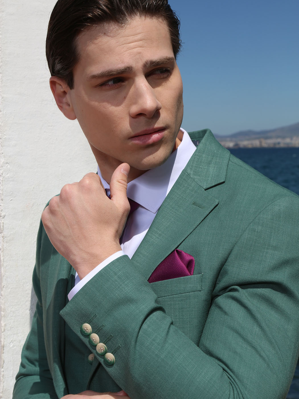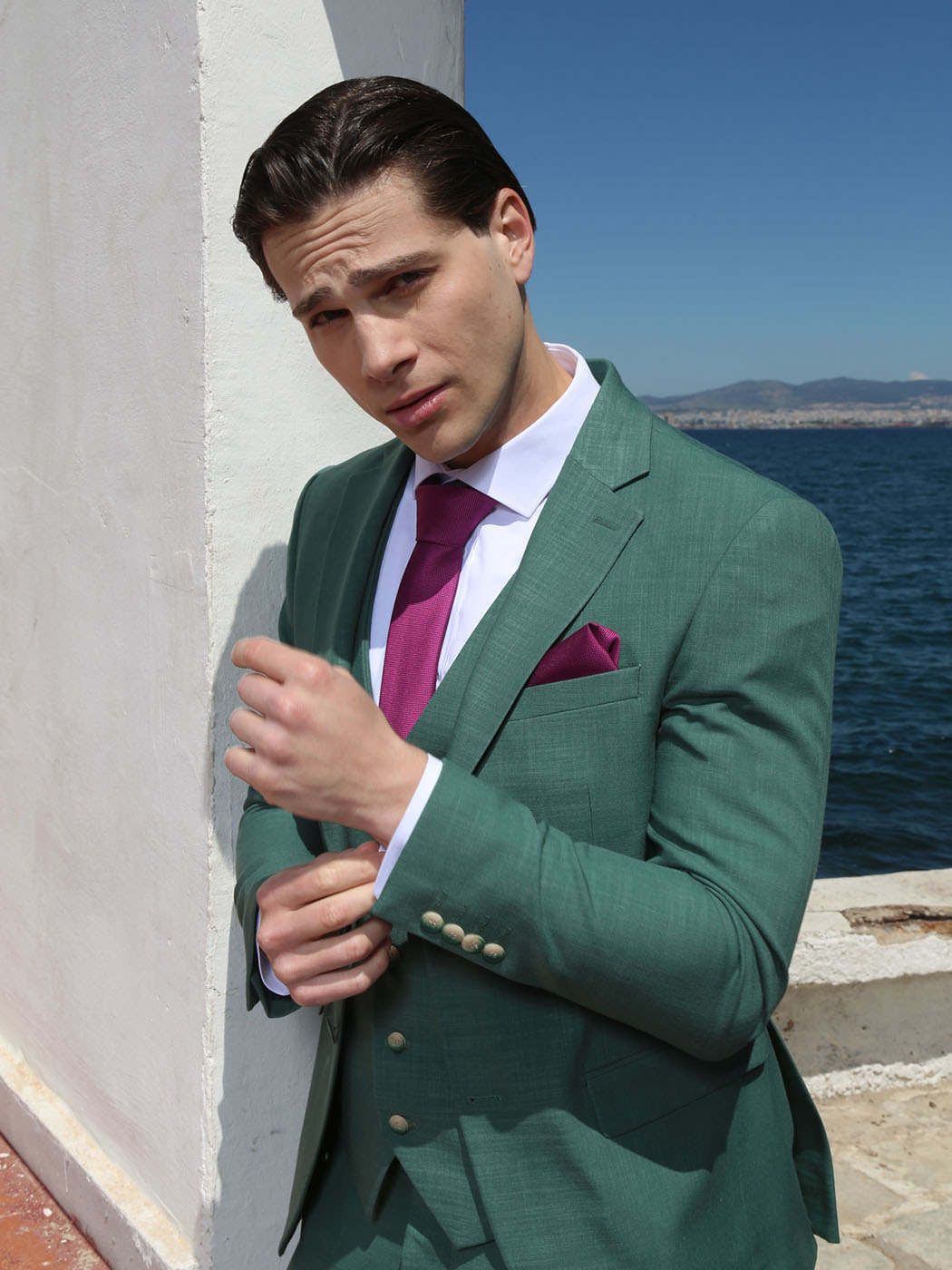 Ανδρικό κοστούμι με γιλέκο Patrizio σε πράσινο χρώμα από εξαιρετικής ποιότητας υλικά.