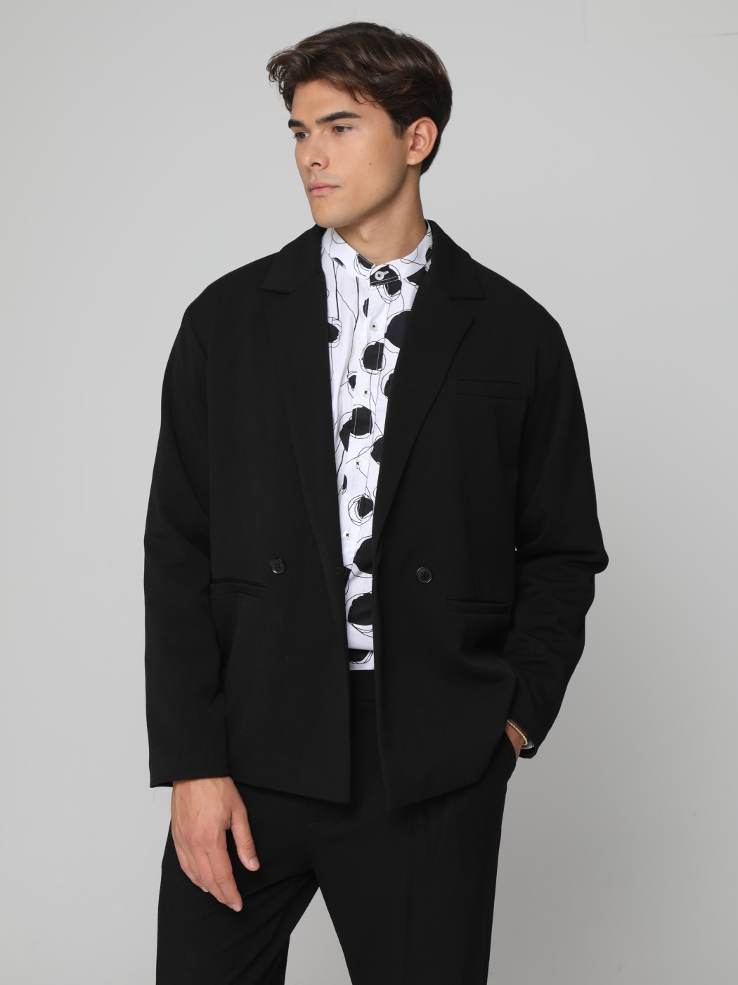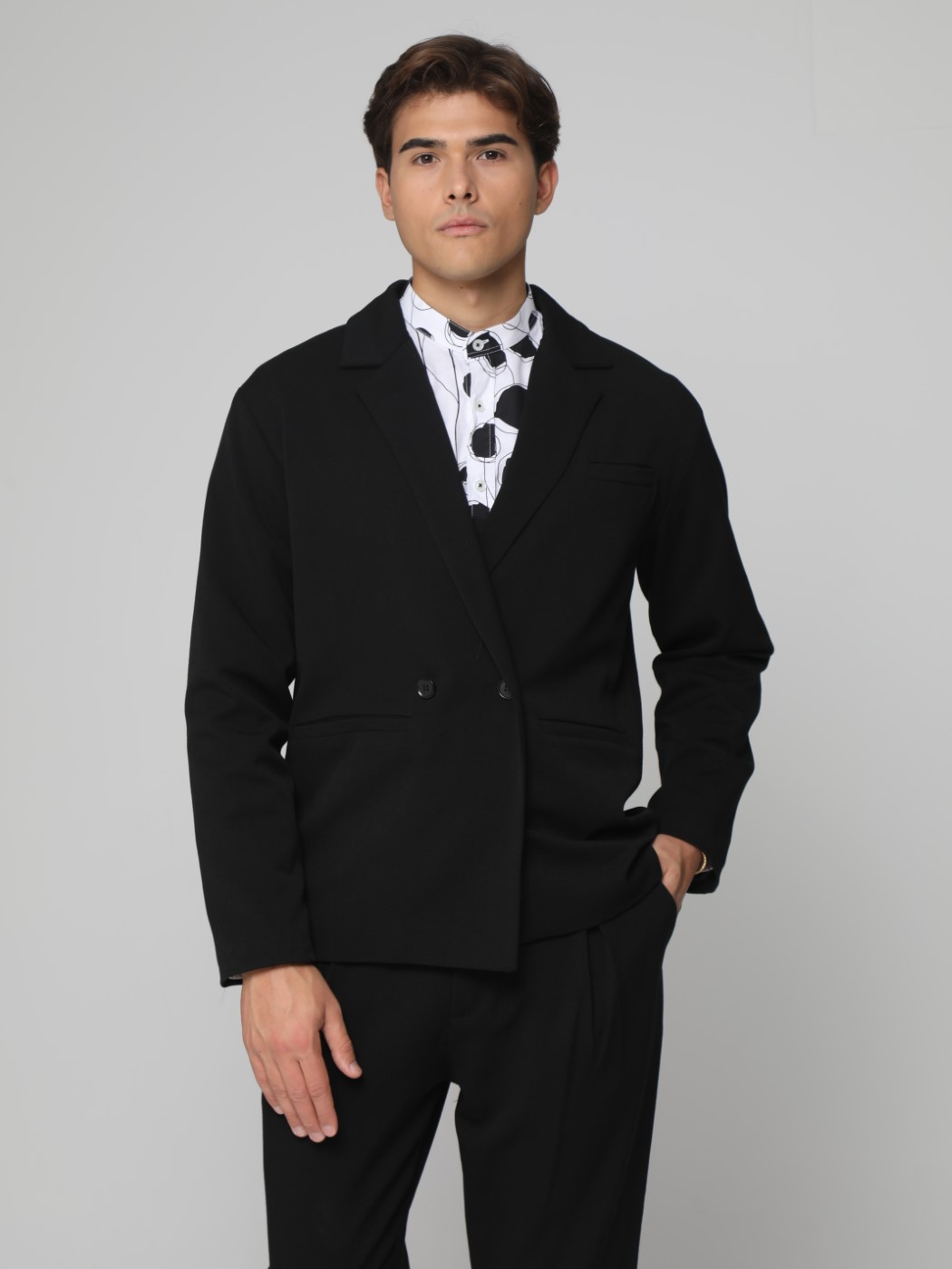 Ανδρικό σακάκι με σταυρωτό κούμπωμα μπροστά και κλασσικές τσέπες στα πλάγια και στο πάνω μέρος.