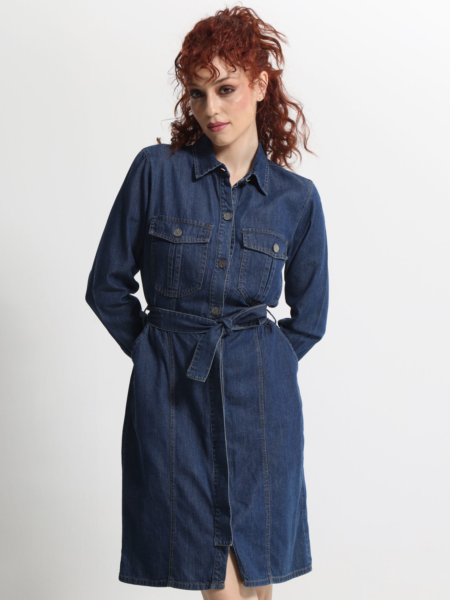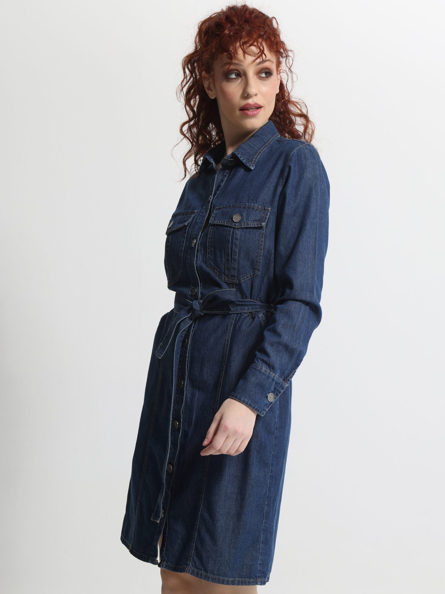 Γυναικείο Μακρυμάνικο Jean Φόρεμα Με Ζώνη FRANCESCA 945026 Blue
