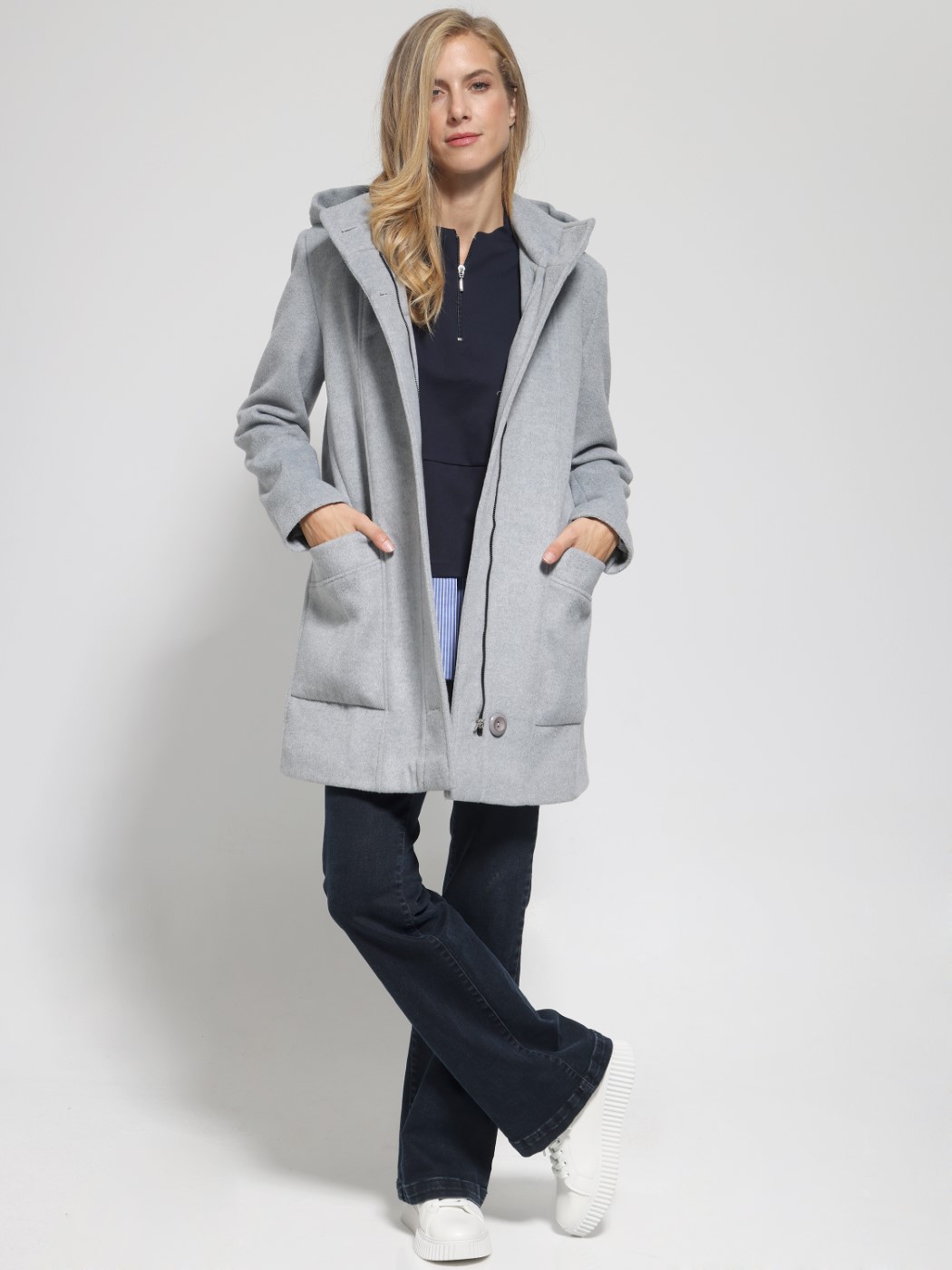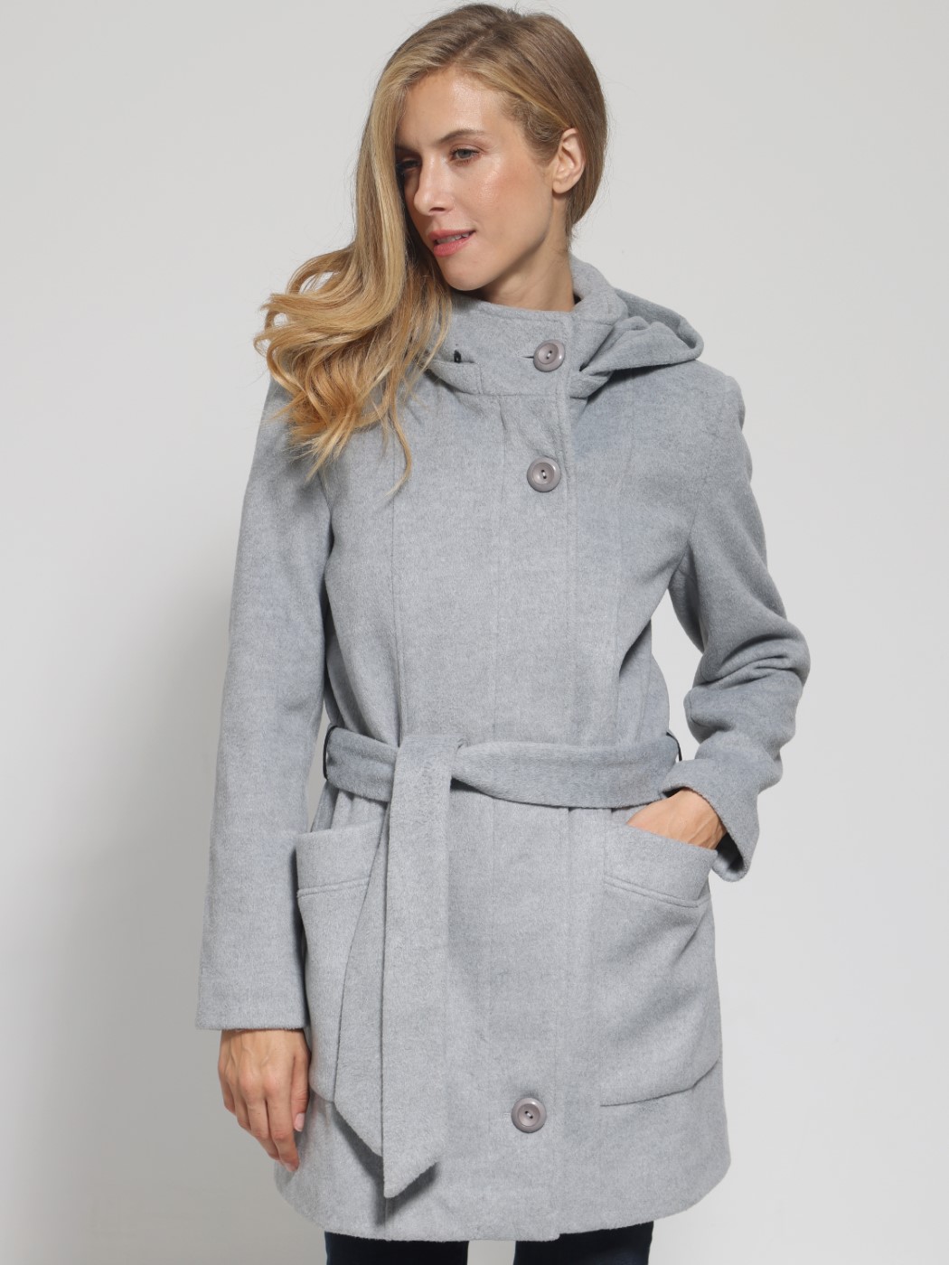 Γυναικείο Παλτό Με Κουκούλα PIPINA 8811 γκρι