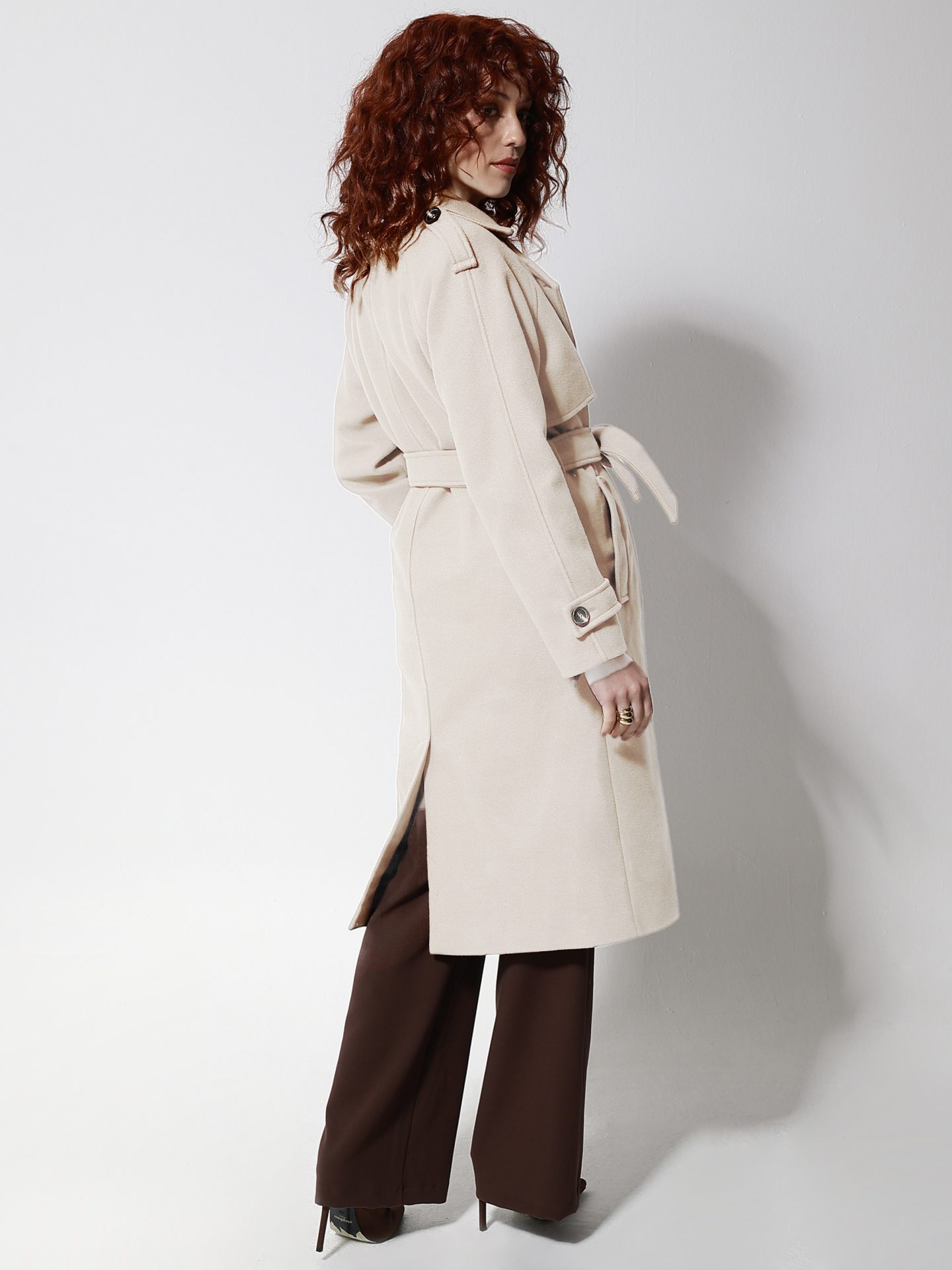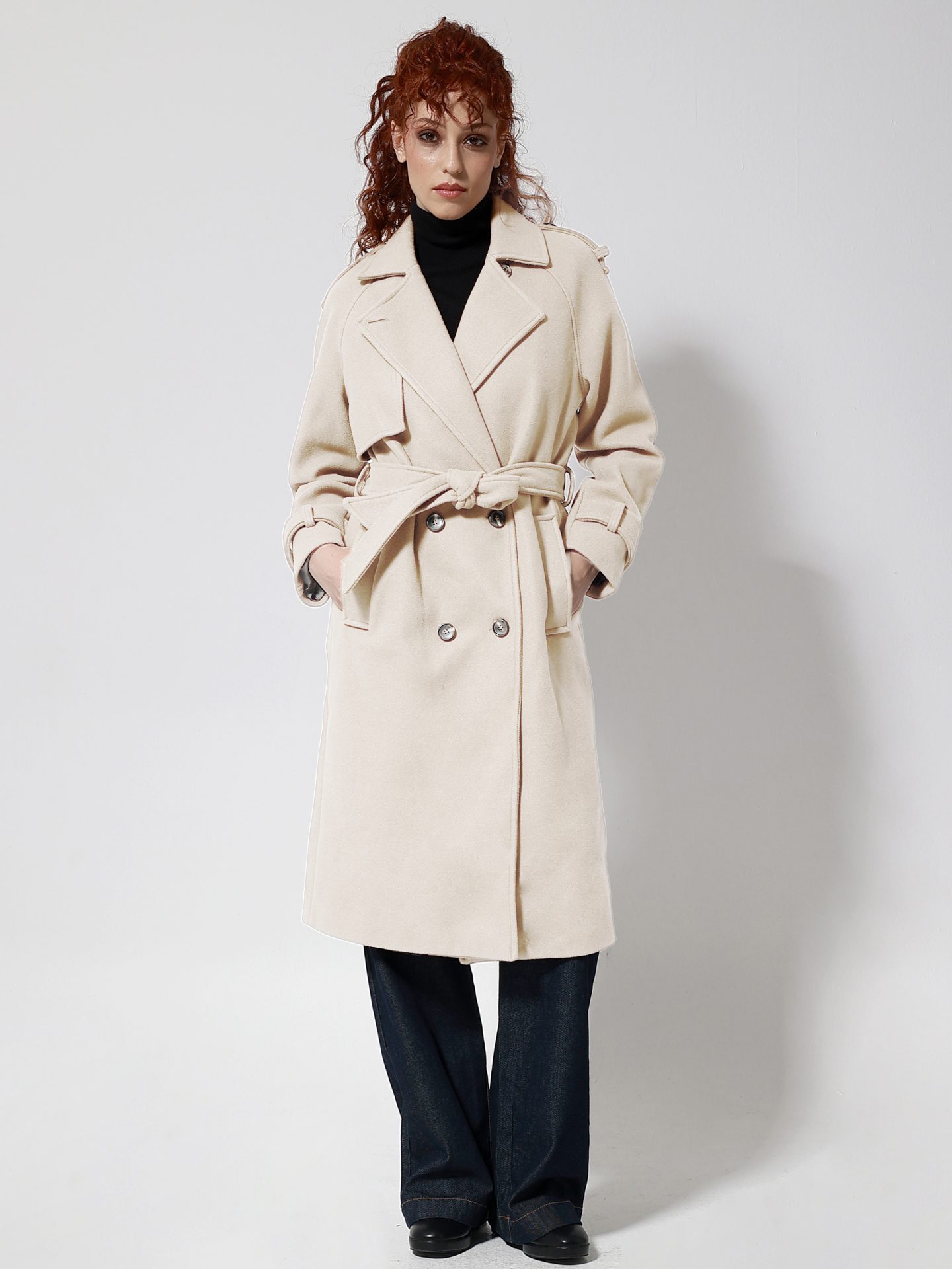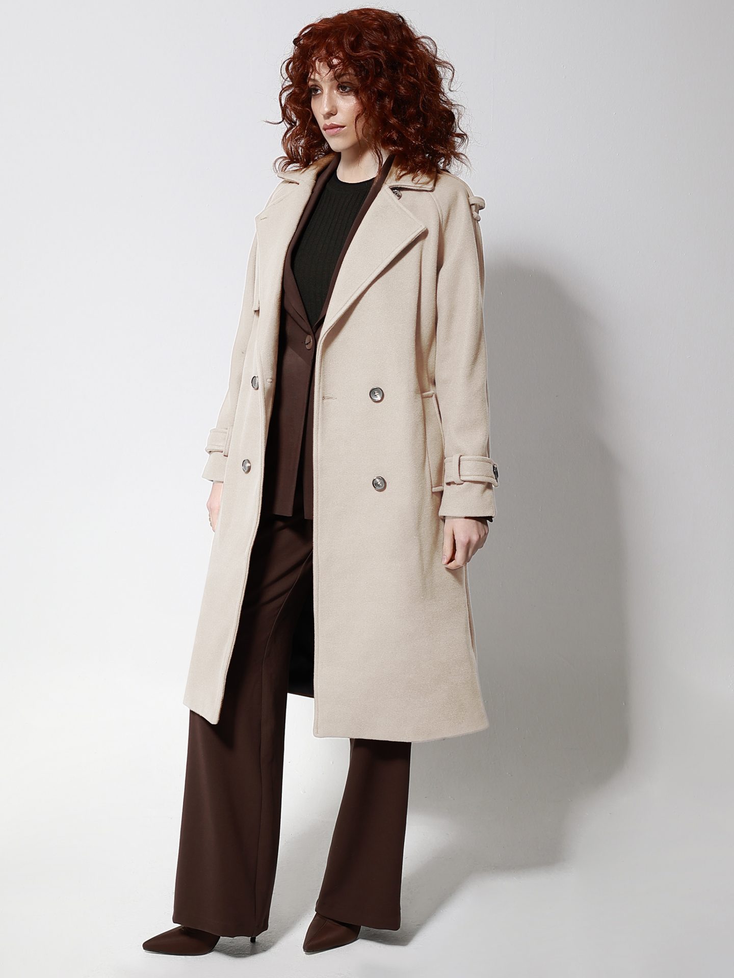 Γυναικείο Παλτό με Ζώνη και Διπλό Κούμπωμα WHITNEY 8714 Μπεζ