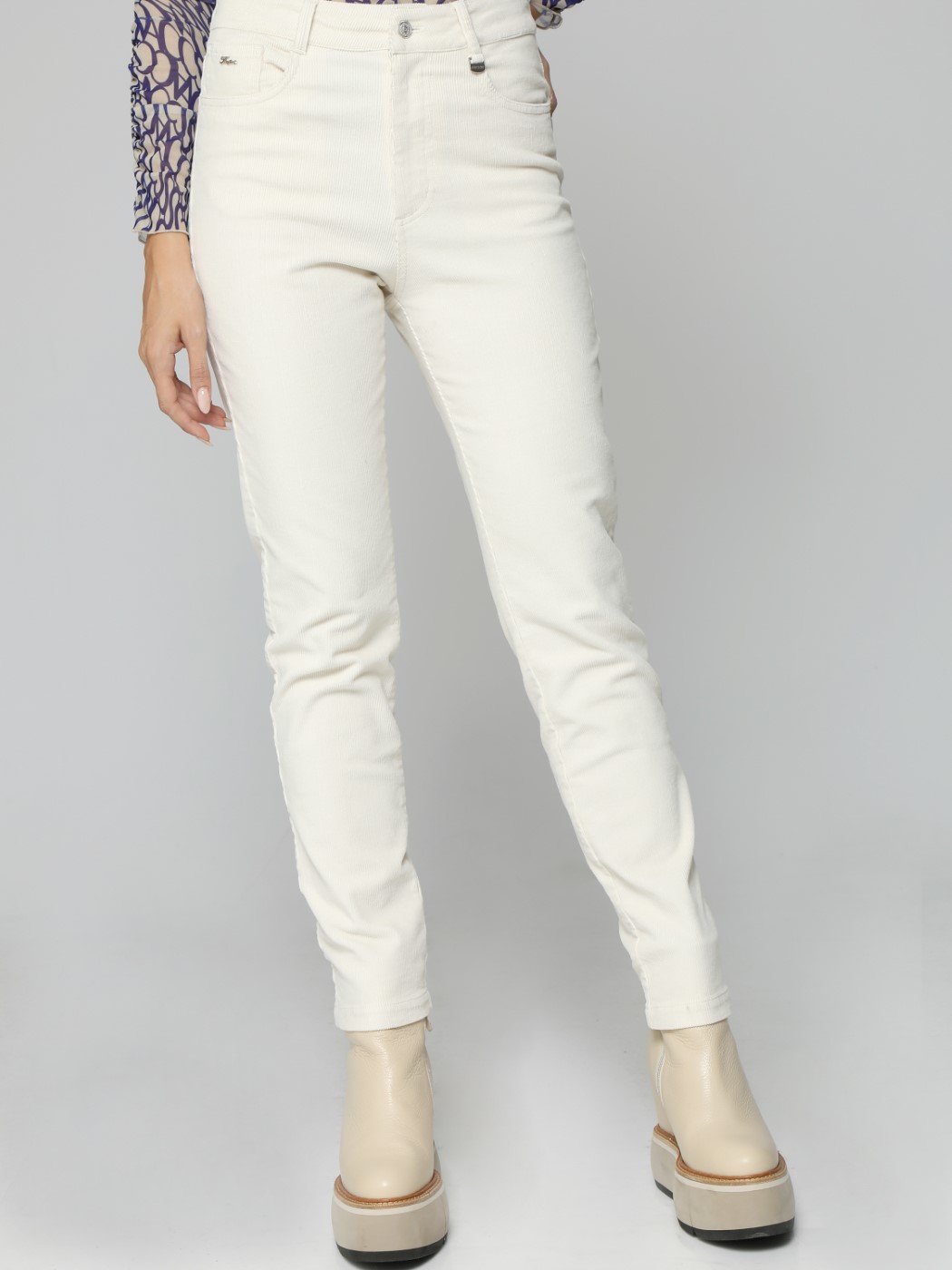 Γυναικείο Κοτλέ Παντελόνι High Fit NESS 7435 Εκρού