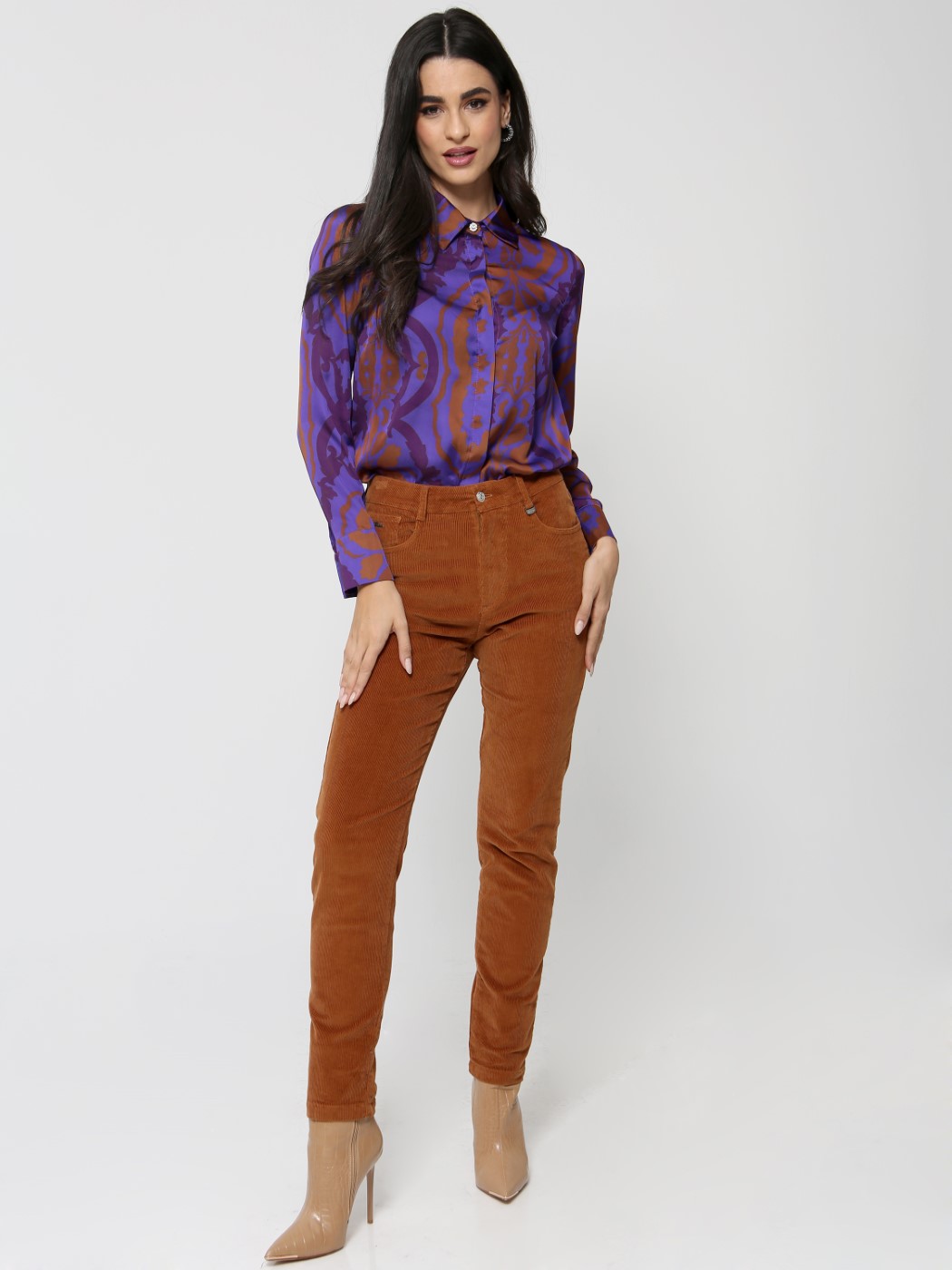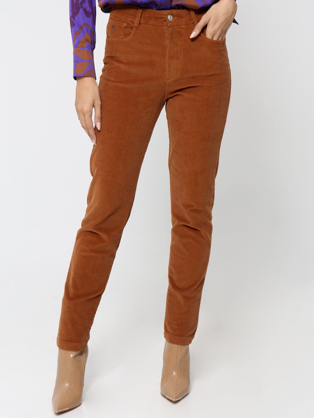 Γυναικείο Κοτλέ Παντελόνι High Fit NESS 7435 Καμηλό