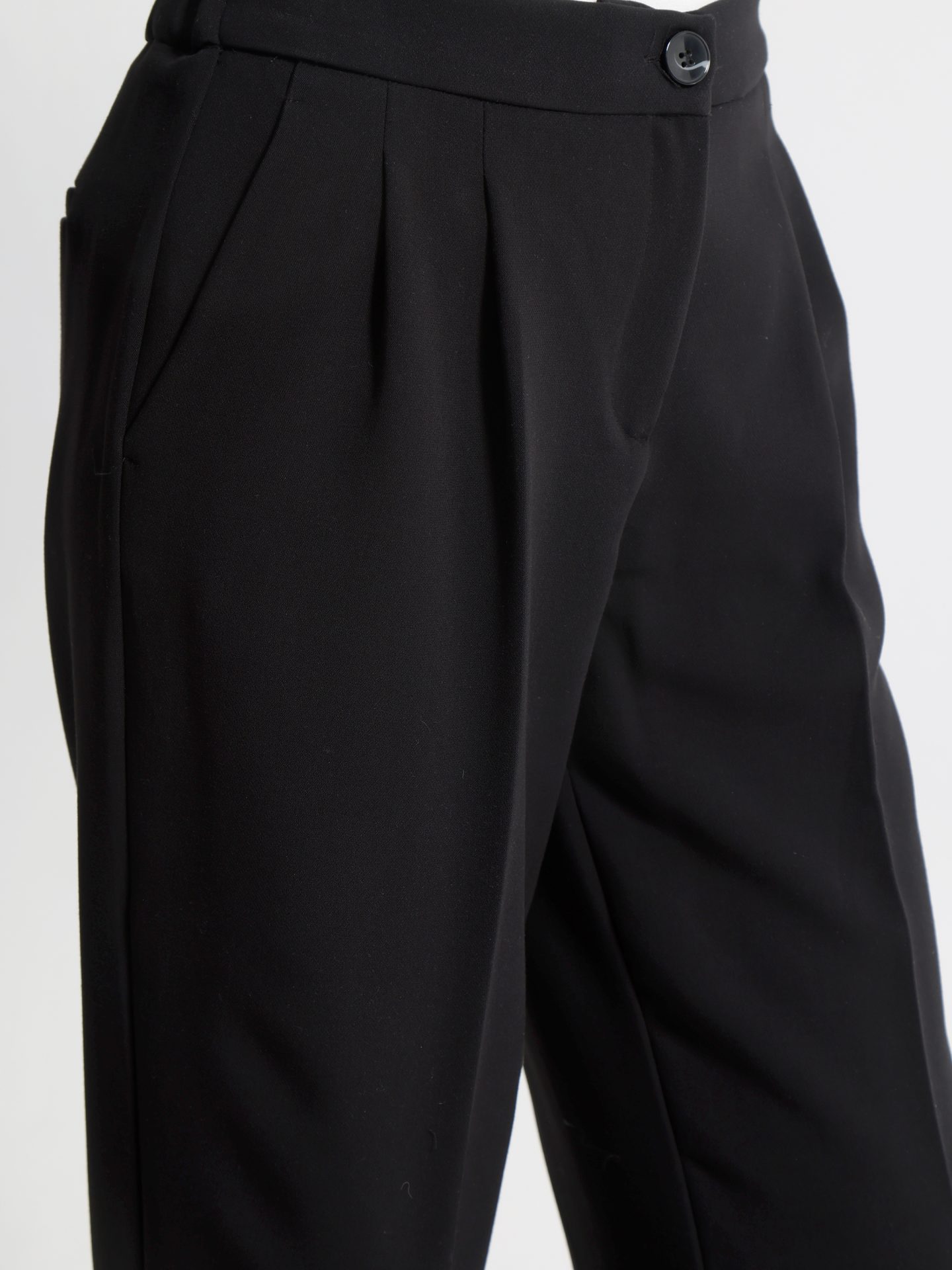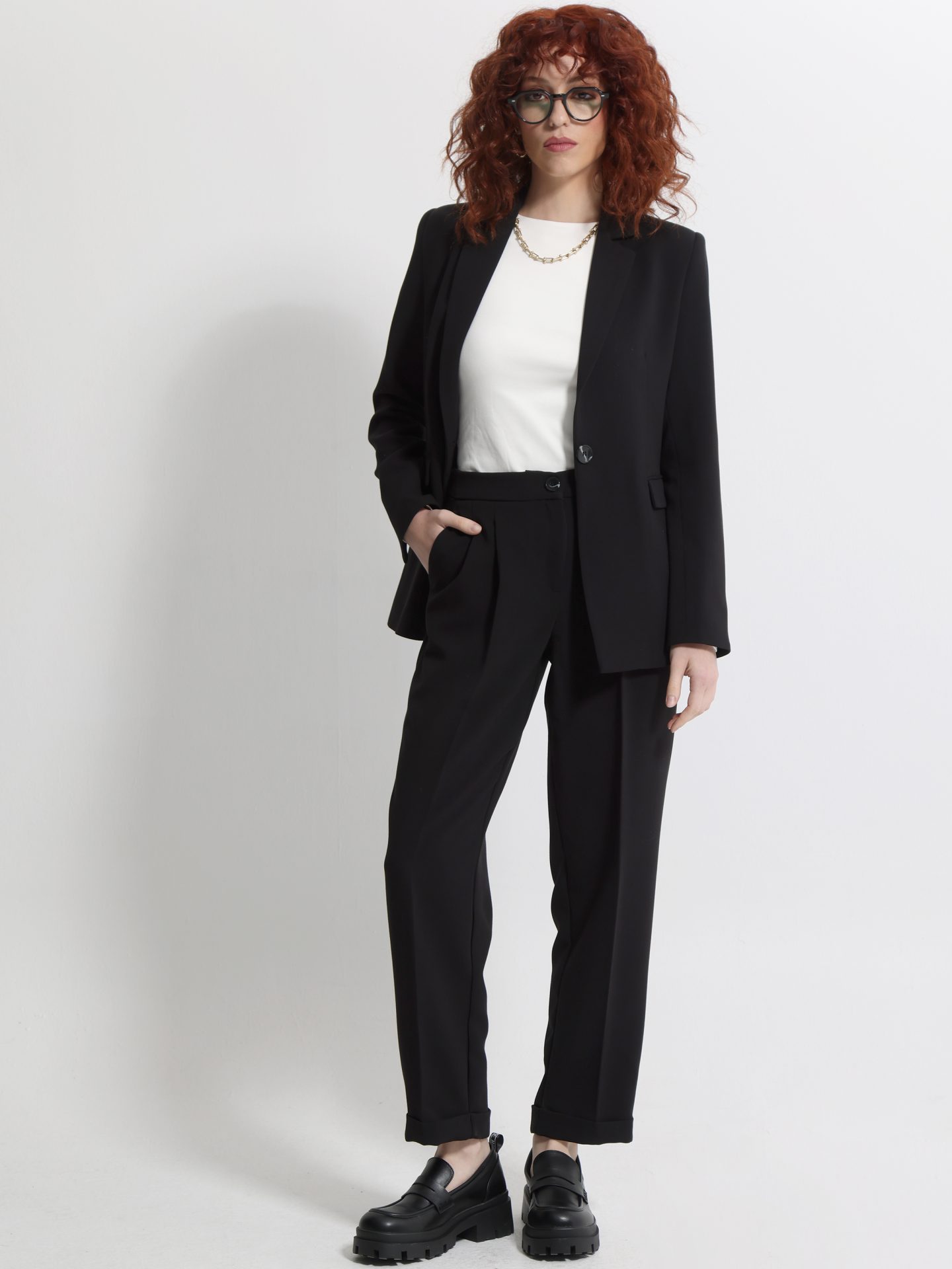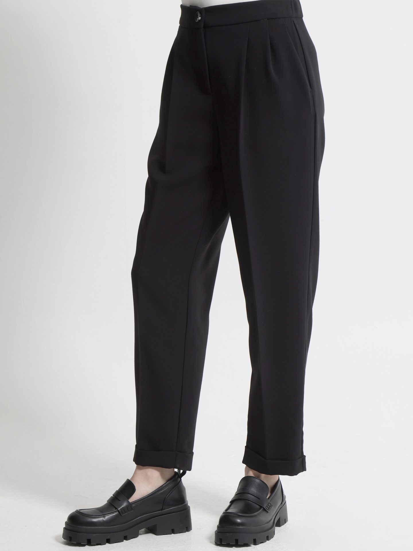 Ένα κομμάτι που αποπνέει κομψότητα και άνεση ταυτόχρονα με ψηλόμεση εφαρμογή που κολακεύει τη σιλουέτα και πιέτες στο μπροστινό μέρος που χαρίζουν διακριτική δομή και σοφιστικέ χαρακτήρα ιδανικό για γυναίκες που θέλουν να συνδυάσουν το επαγγελματικό look με μοντέρνες τάσεις
