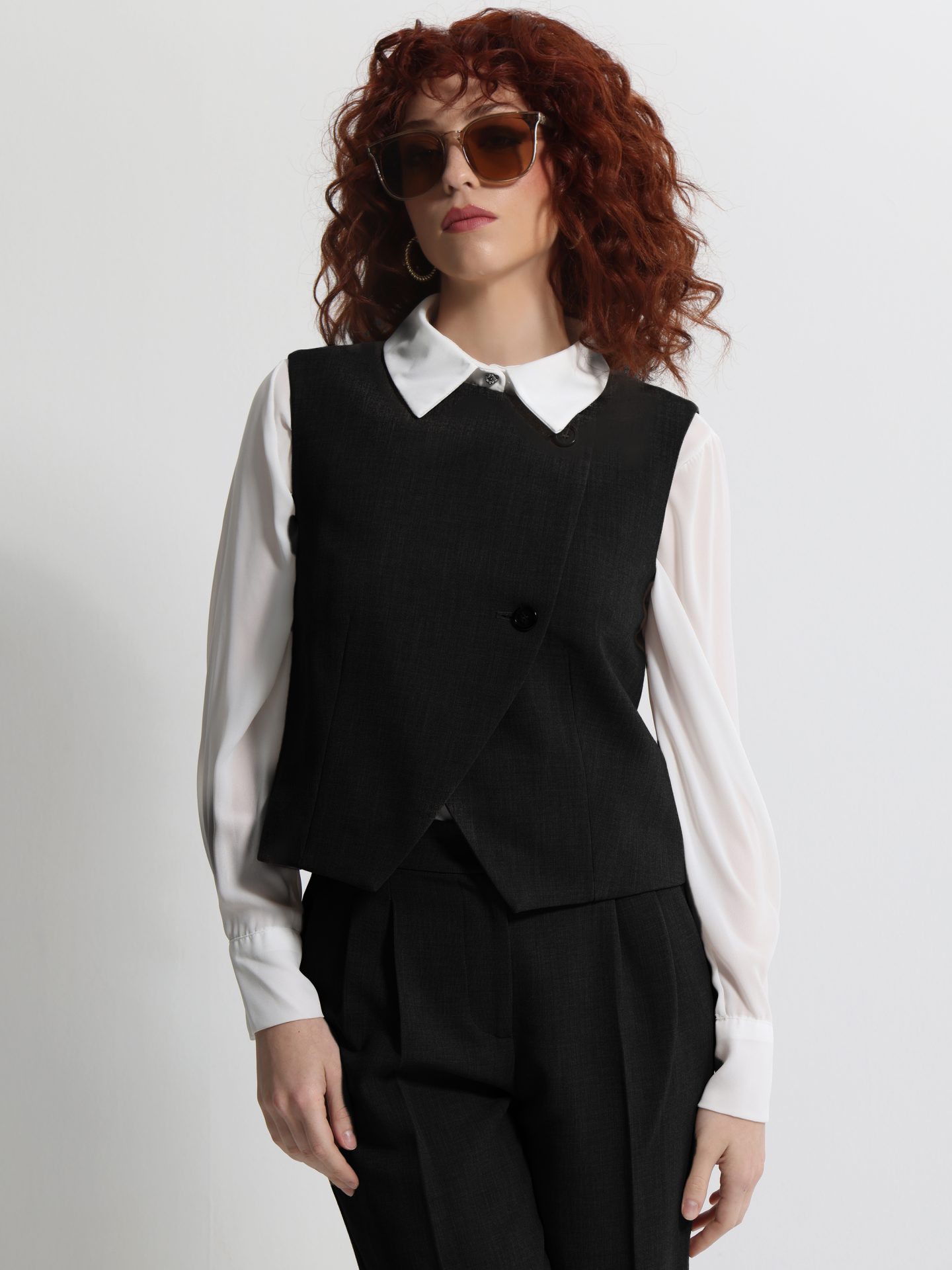 Γυναικείο Ασύμμετρο Γιλέκο με Δύο Κουμπιά GEMMA 9222 Μαύρο