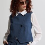 Με μια αέρινη ισορροπία ανάμεσα στο minimal design και το σύγχρονο tailoring, το γυναικείο ασύμμετρο γιλέκο με δύο κουμπιά αναδεικνύεται σε must-have κομμάτι της σεζόν. Η ταμπά απόχρωση του υφάσματος αποπνέει διακριτική πολυτέλεια, ενώ η ασυμμετρία στη γραμμή χαρίζει μια avant-garde διάσταση στο look σου. Είναι το είδος του κομματιού που δεν περνά απαρατήρητο, αλλά αντίθετα γίνεται το κέντρο της στιλιστικής αφήγησης.