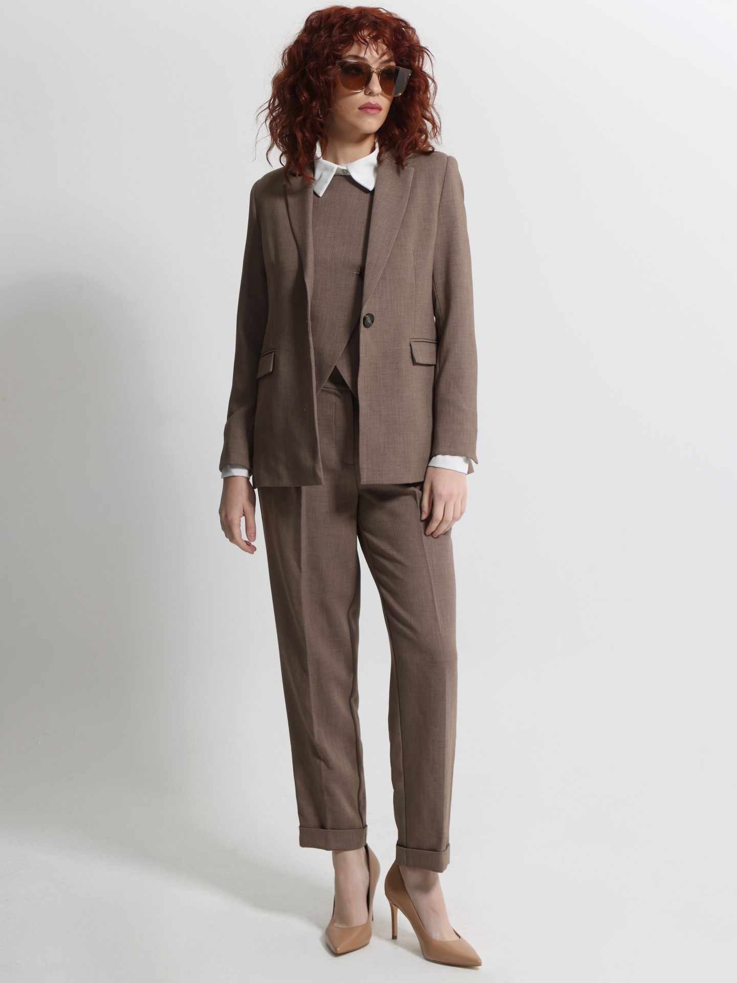 Κομψό Γυναικείο Σακάκι με Μονό Κούμπωμα SERENA 8922 Καφέ