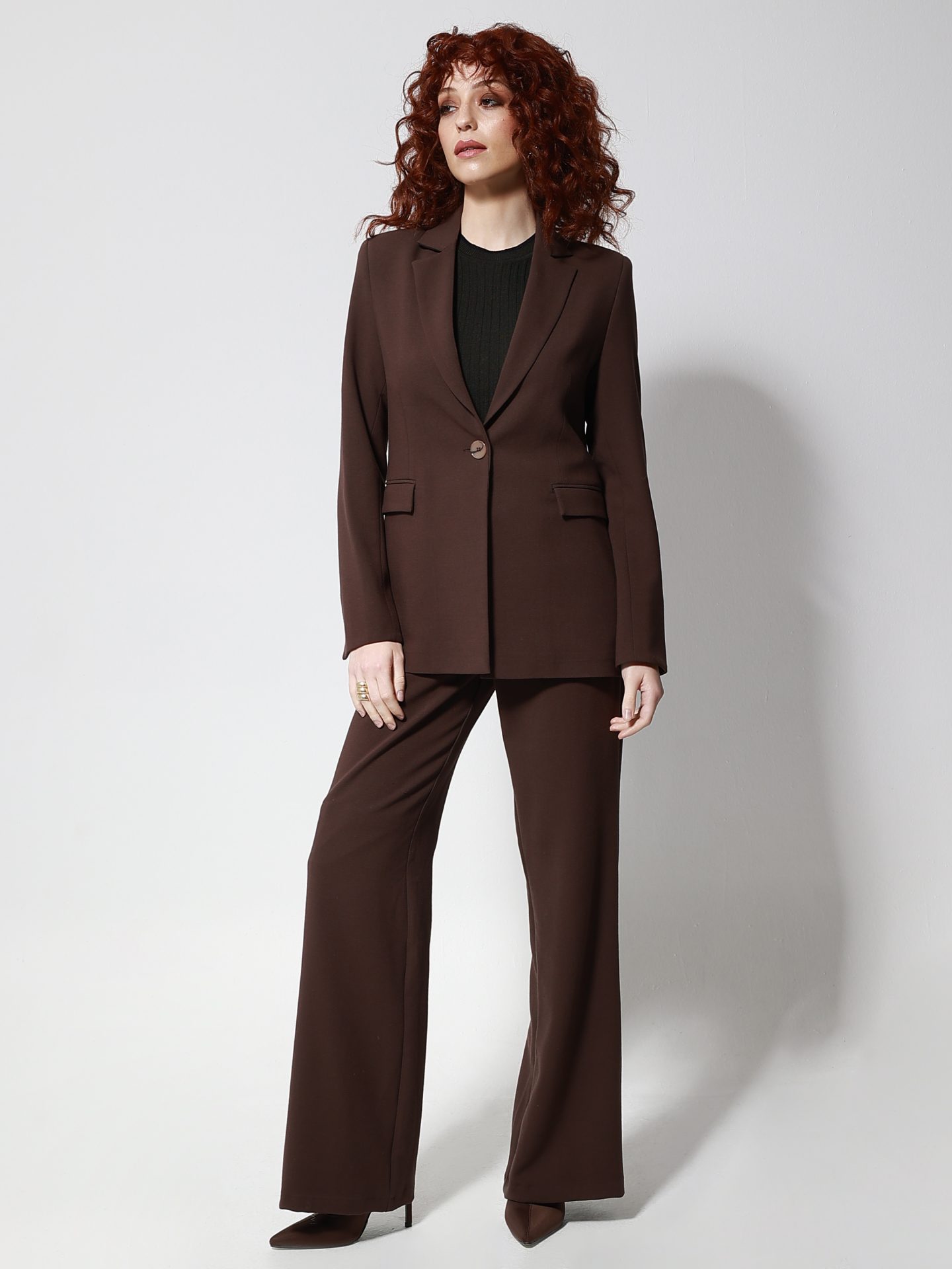 Κομψό Γυναικείο Σακάκι με Μονό Κούμπωμα SERENA 8922 Καφέ