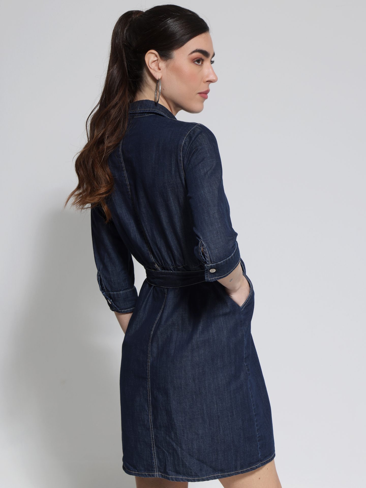 Αυτό το γυναικείο φόρεμα είναι η τέλεια επιλογή για κάθε περίσταση! Φτιαγμένο από βαμβακερό jean, προσφέρει άνεση και στυλ. Η ζώνη από το ίδιο ύφασμα τονίζει τη μέση και προσθέτει μια κομψή πινελιά στο σύνολο.