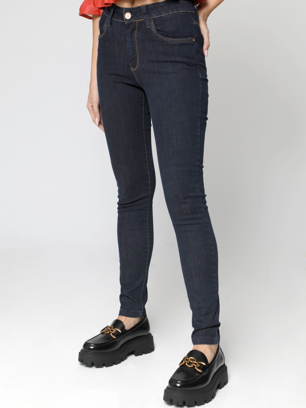 Γυναικείο παντελόνι Jean MEDIUM FIT-SLIM Dark ελαστικό με κλείσιμο με κουμπί και φερμουάρ και 5 τσέπες.