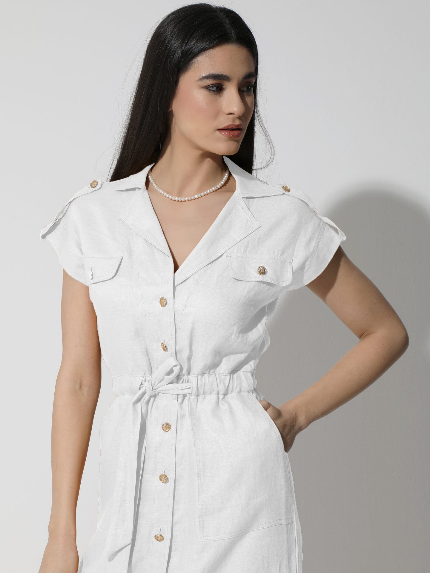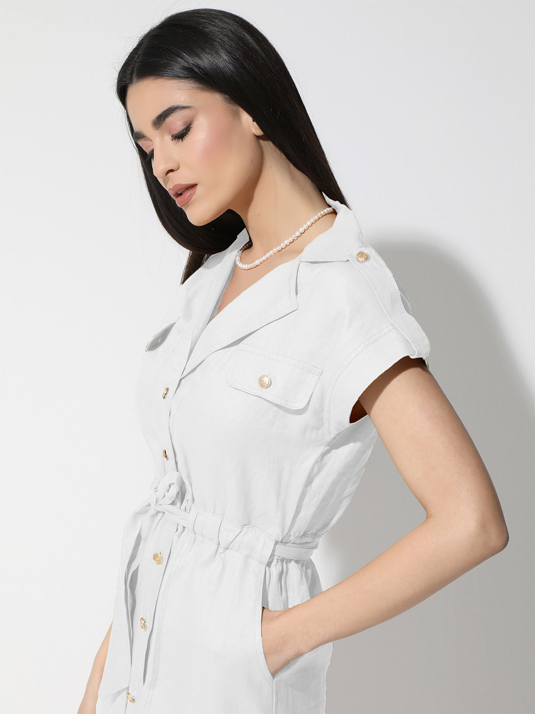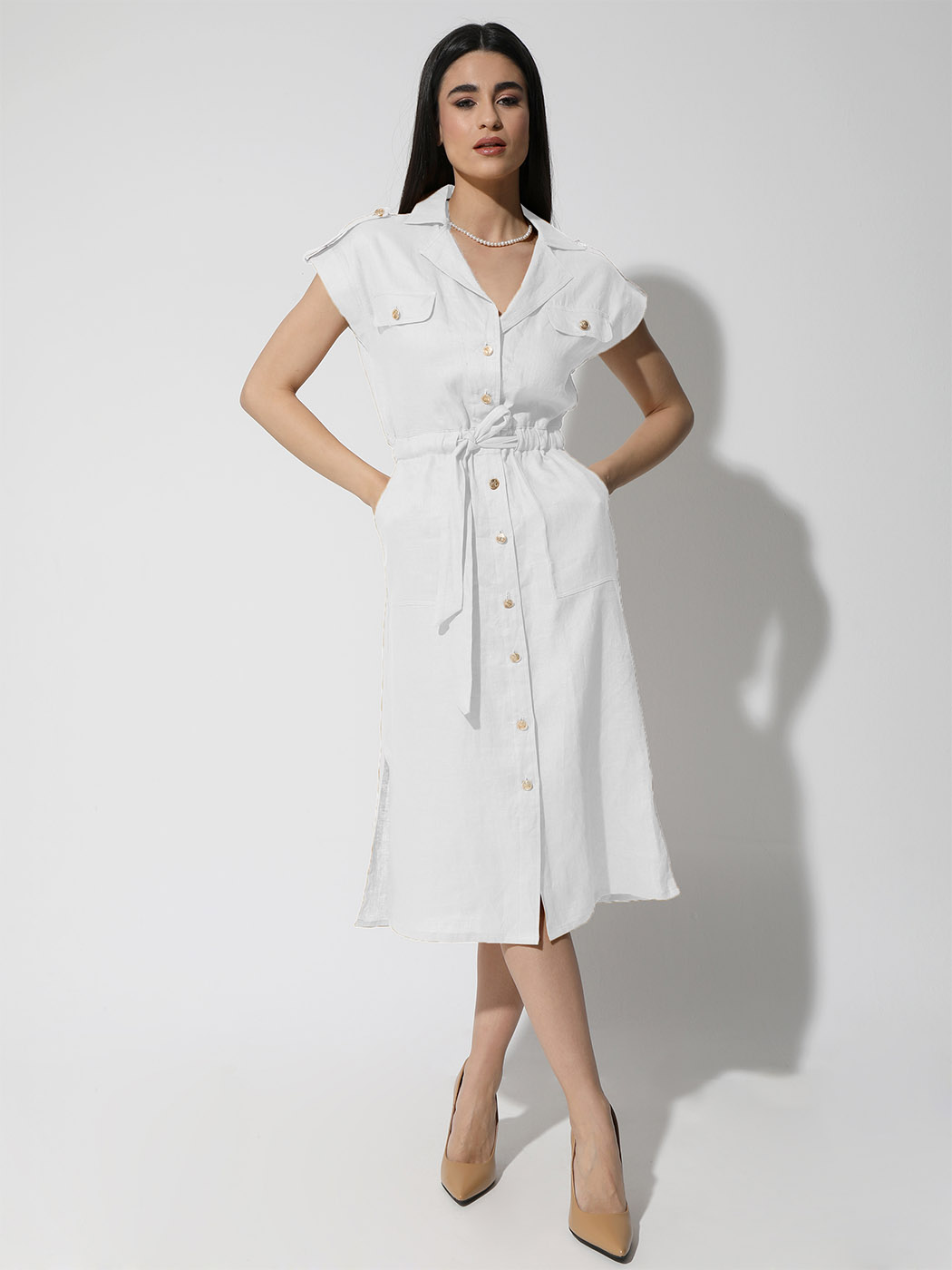 Γυναικείο Λινό Φόρεμα Με Ζώνη ALDINA 933082 Λευκό