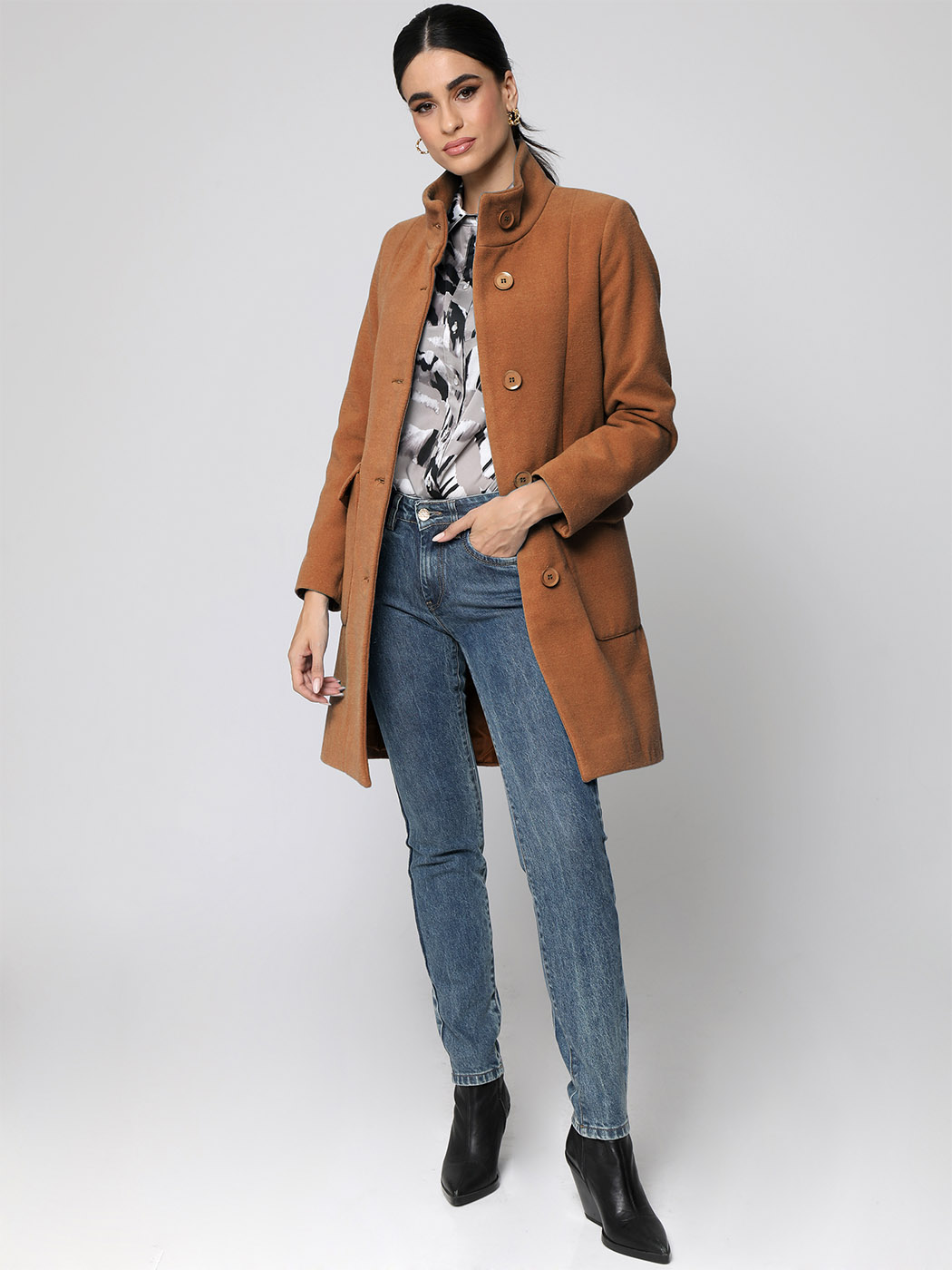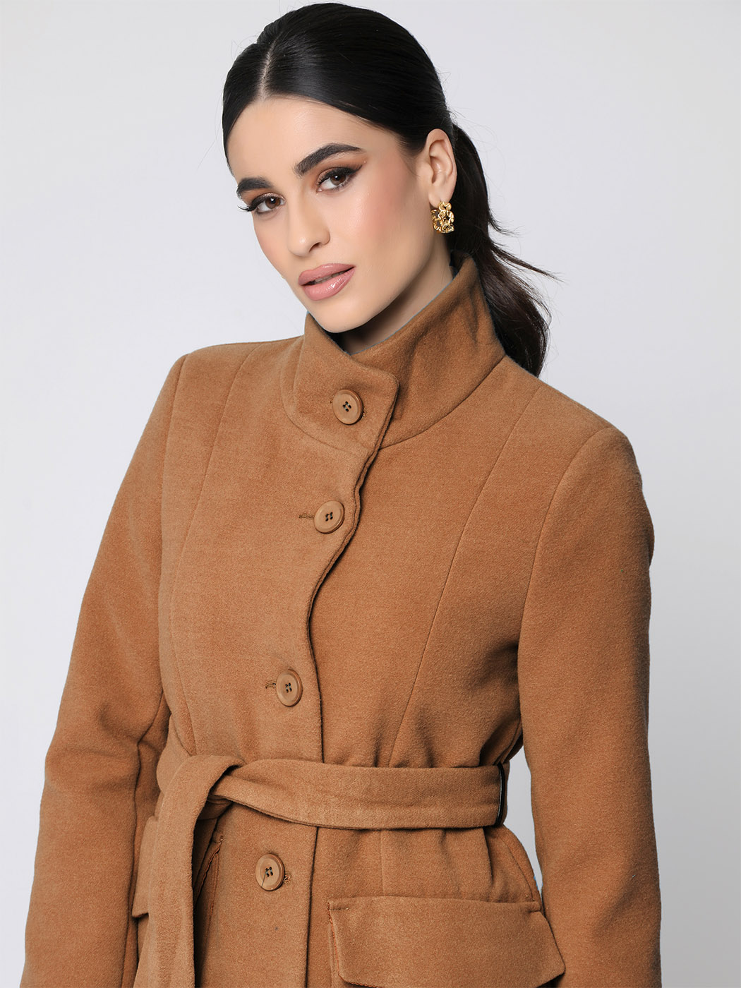 Γυναικείο Παλτό Με Ζώνη LESIA 8617 Καμηλό