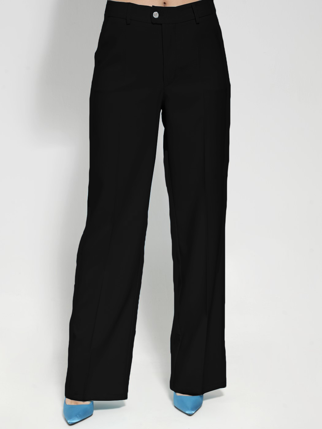 Ψηλόμεση παντελόνα υφασμάτινη, με φαρδύ μπατζάκι wide leg, έχει πλαϊνές τσέπες, κλείσιμο μπροστά με φερμουάρ, εσωτερικό κουμπί και μεταλλική κόπιτσα, με θηλιές στη μέση για ζώνες σε κανονική εφαρμογή.