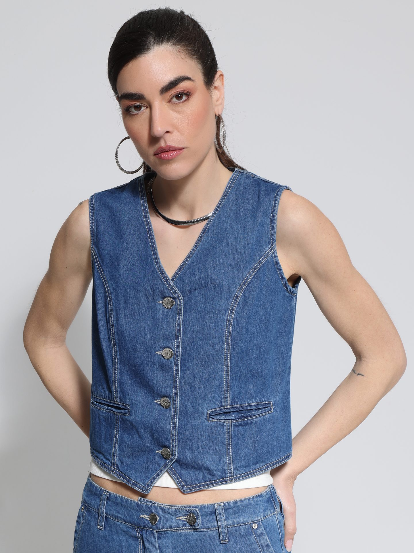 Γυναικείο Jean Γιλέκο Κοντό SALINA 9248 Blue