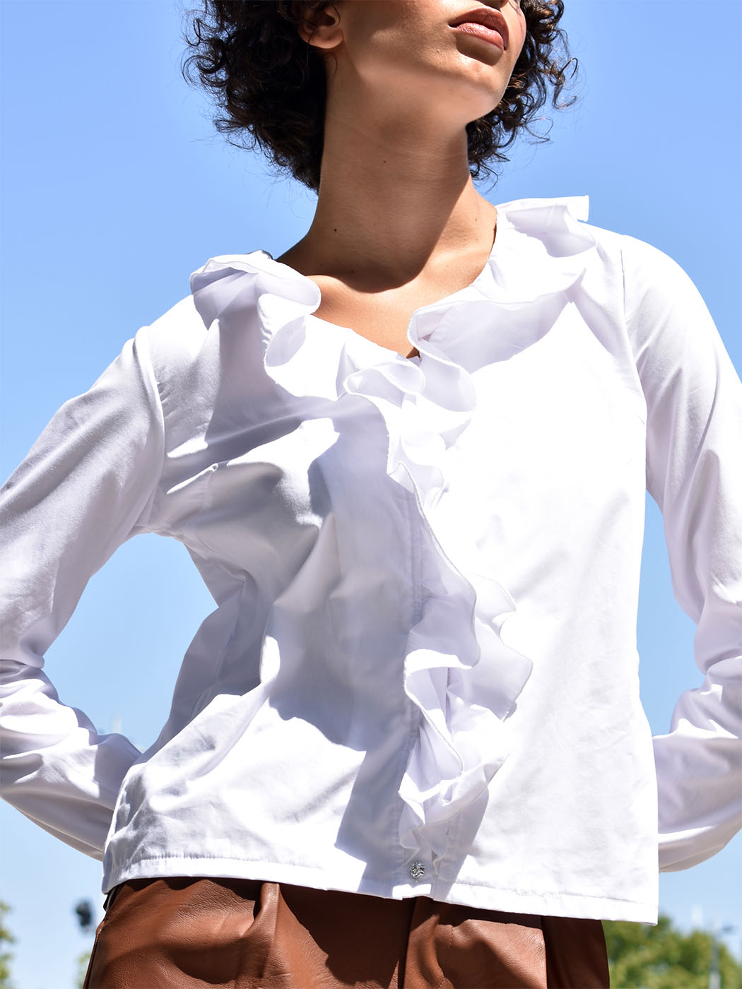 Κατασκευασμένο από βαμβακερό ύφασμα, αυτό το πουκάμισο είναι άνετο και αναπνέει, εξασφαλίζοντας άνεση όλη μέρα. Επιπλέον, το ύφασμα έχει μια μικρή ελαστικότητα που το καθιστά ευέλικτο και εύκολο στην κίνηση. Είναι ιδανικό για να δημιουργήσετε κομψά και καθημερινά outfits. Συνδυάστε το με παντελόνια ή φούστες για ένα κομψό γραφείου look!