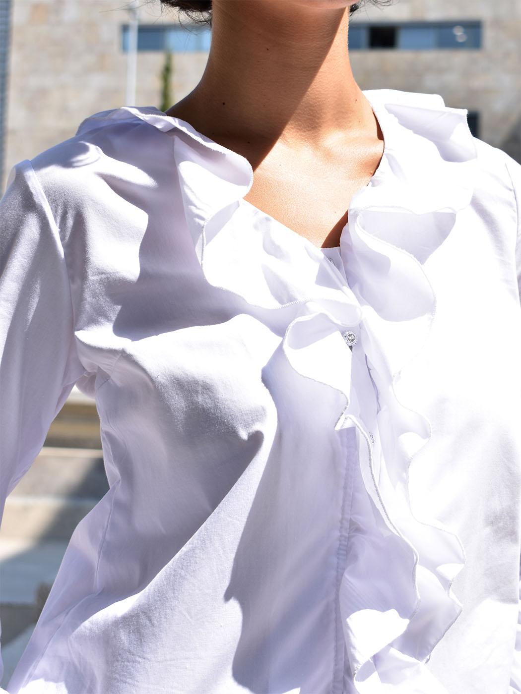 Αυτό το γυναικείο πουκάμισο είναι ιδανικό για κάθε περίσταση. Με μακριά μανίκια και λευκό χρώμα, αυτό το πουκάμισο προσφέρει κομψότητα και στυλ. Κλείνει με κουμπάκια και διαθέτει δύο τσέπες μπροστά για πρακτικότητα.
