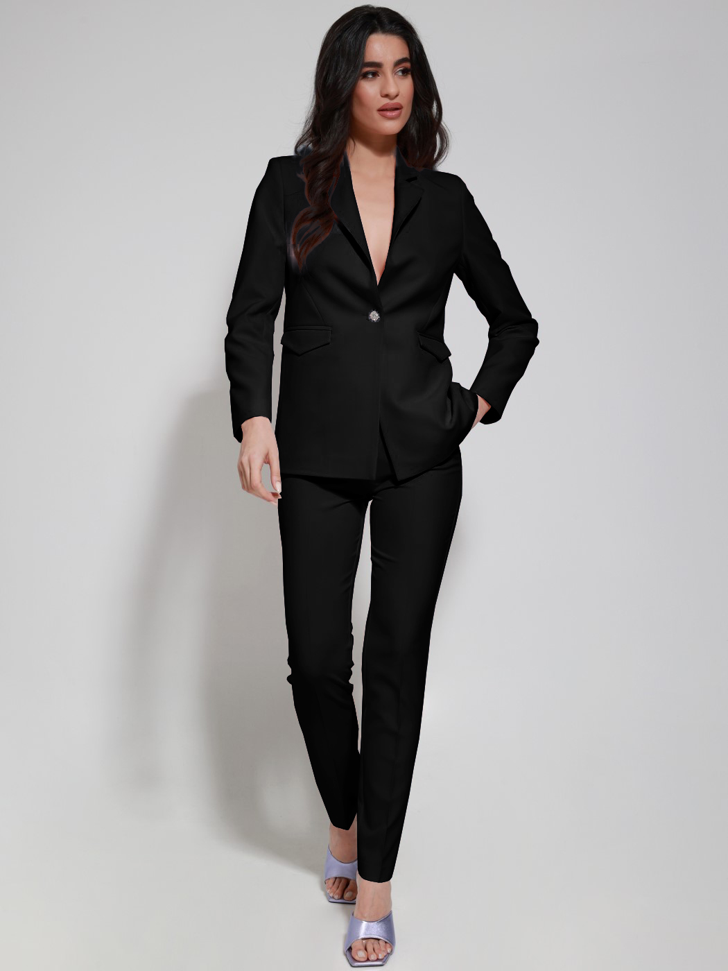 Μονόκουμπο με πέτο, τσέπες με καπάκι, λεπτές βάτες και κουμπιά με στρασάκια. Έχει τέλεια εφαρμογή με λίγη ελαστικότητα για κάθε σωματότυπο και μπορεί να συνδυαστεί με ένα τοπάκι ή ένα πουκάμισο, από μέσα ή απ’ έξω. Ως κοστούμι σίγουρα θα δώσει ένα estra boost στο στυλ και την εμφάνιση σου! Εξαιρετική επιλογή για το γραφείο αλλά και την σχολή ακόμα και για την νυχτερινή σας έξοδο!